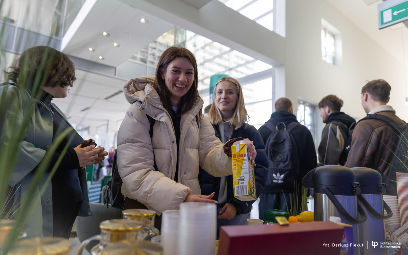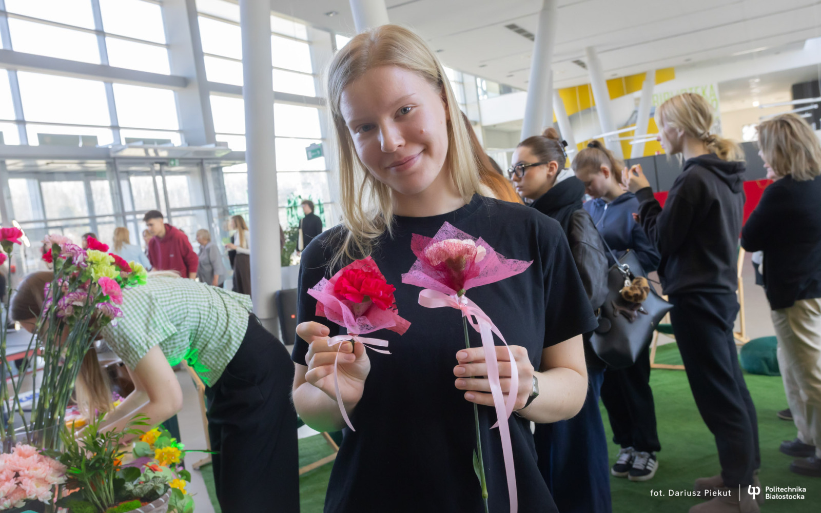 W tym roku wiosna przyszła na kampus Politechniki Białostockiej wcześniej. Wszystko za sprawą Dnia Kobiet i Mężczyzn, który 6 marca 2026 r. zjednoczył studentów i pracowników Uczelni. To był festiwal dobrych relacji, słonecznej energii i politechnicznej integracji. W Centrum Nowoczesnego Kształcenia czekały na uczestników stoiska z atrakcjami i mnóstwo aktywności dla duszy oraz ciała.