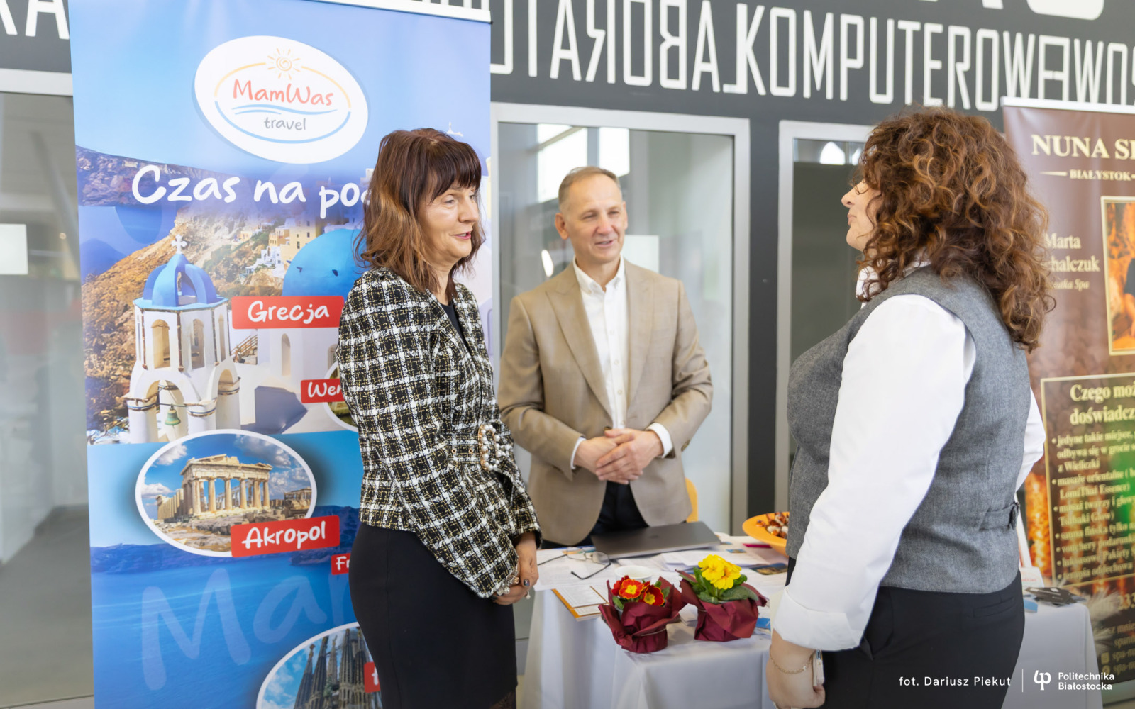 Dla tych, którzy rozmarzyli się o wakacjach czekało stoisko z ofertami biura podróży, dla łasuchów były słodkości z cukierni. Na poważniejsze tematy można było porozmawiać z psychologiem i terapeutą z Centrum Wsparcia Politechniki Białostockiej.