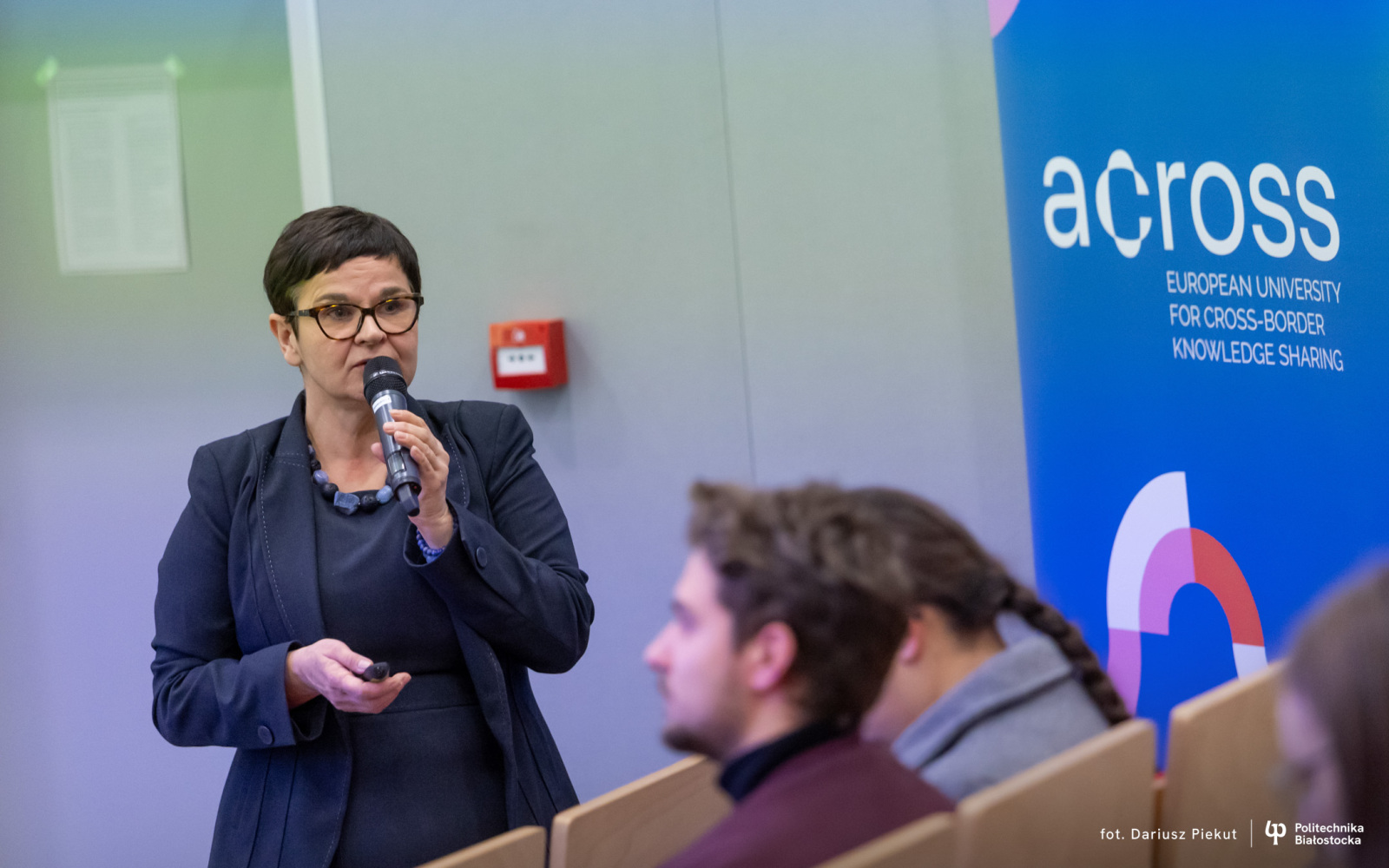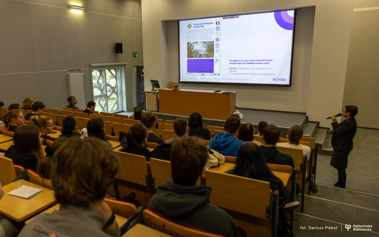 Spotkanie rozpoczęła dr hab. inż. Dorota Anna Krawczyk, prof. PB, koordynator ACROSS z ramienia Politechniki Białostockiej. Następnie mgr Grażyna Jakimiuk, pracownik biura ACROSS na PB, przybliżyła studentom najważniejsze założenia sojuszu – od możliwości udziału w zajęciach online, po krótkoterminowe i długoterminowe formy mobilności.