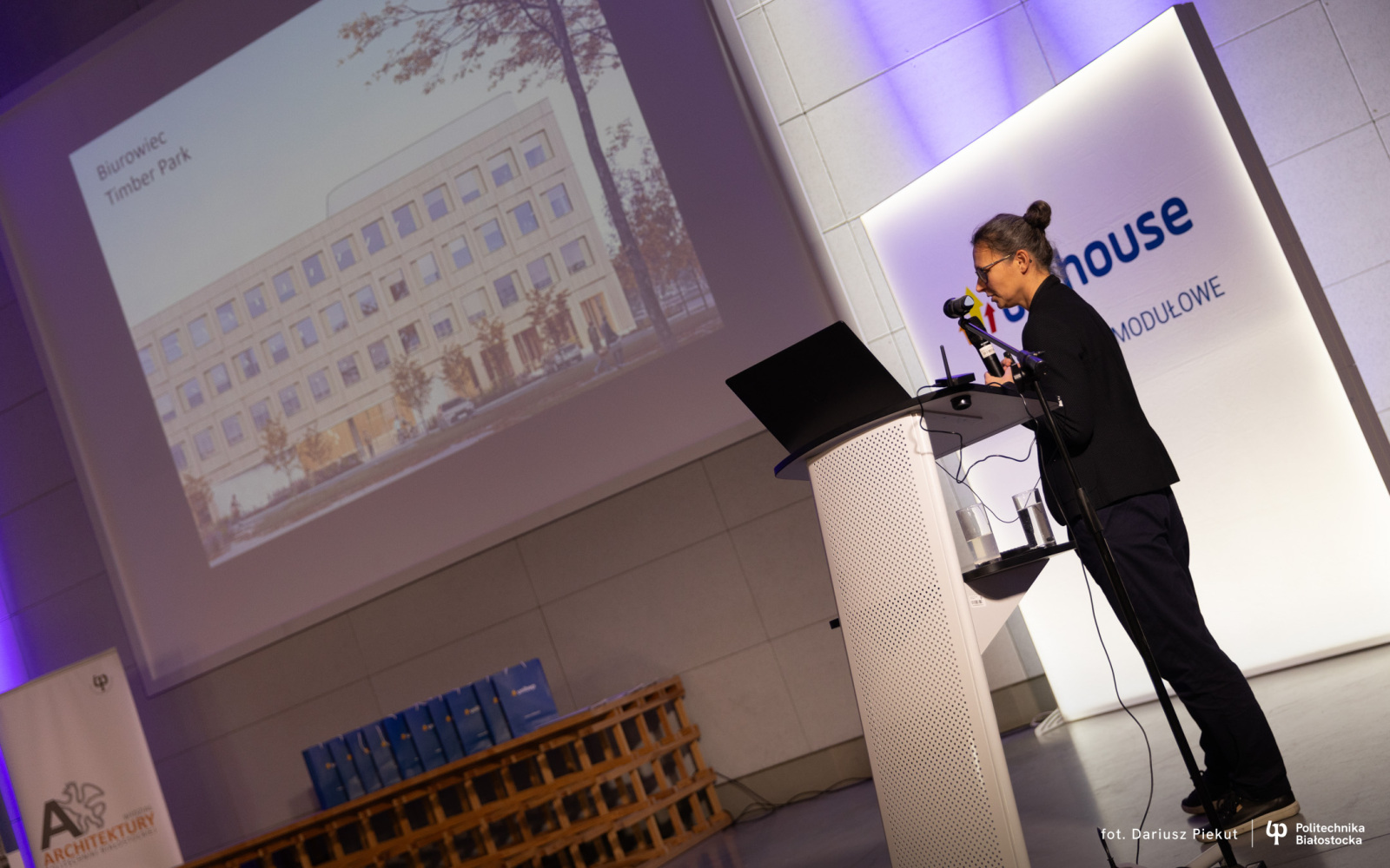 – Architektura drewniana jest obecna w programie kształcenia studentów na kierunku architektura w Wydziale Architektury Politechniki Białostockiej – mówi dr hab. inż. arch. Tatiana Misijuk, prof. PB, Dziekan Wydziału Architektury Politechniki Białostockiej, przewodnicząca jury konkursu. – Są to różne przedmioty, które zawierają elementy związane z technologią drewna, konstrukcją drewnianą, jak również z prefabrykatami drewnianymi.