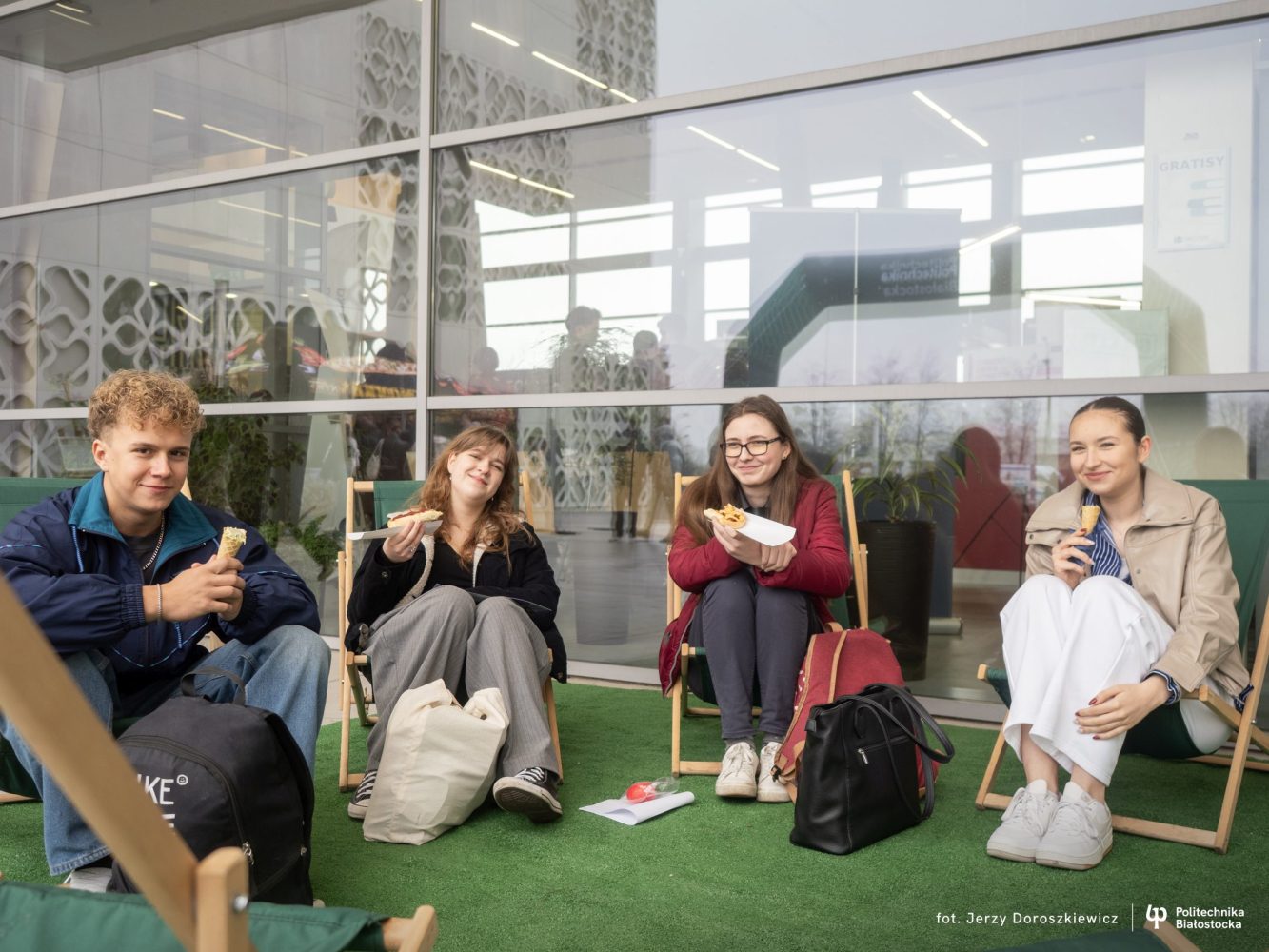 Na uczestników Dnia Otwartego w uczelni czekały także mniej formalne atrakcje takie, jak możliwość zwiedzania akademika, biblioteki, hali sportowej i Centrum Historii Politechniki Białostockiej. Była też fotobudka, przekąski i wycieczki po kompleksie kortów i boisk na świeżym powietrzu.