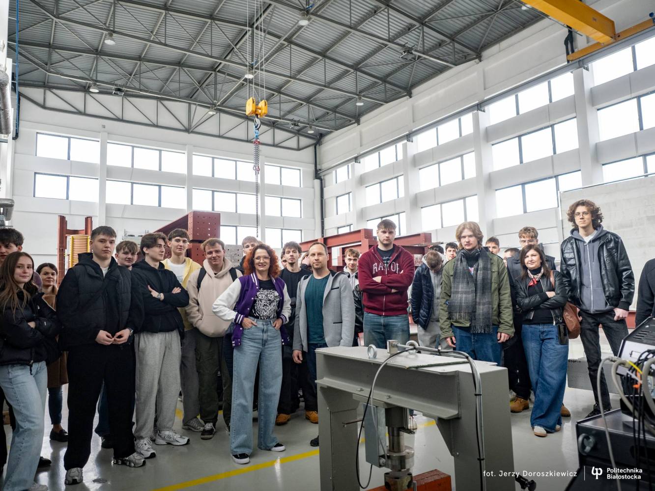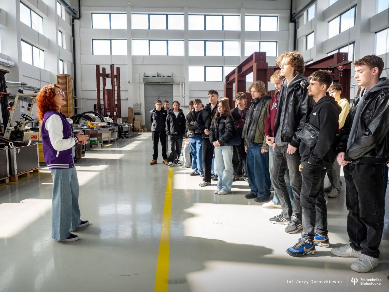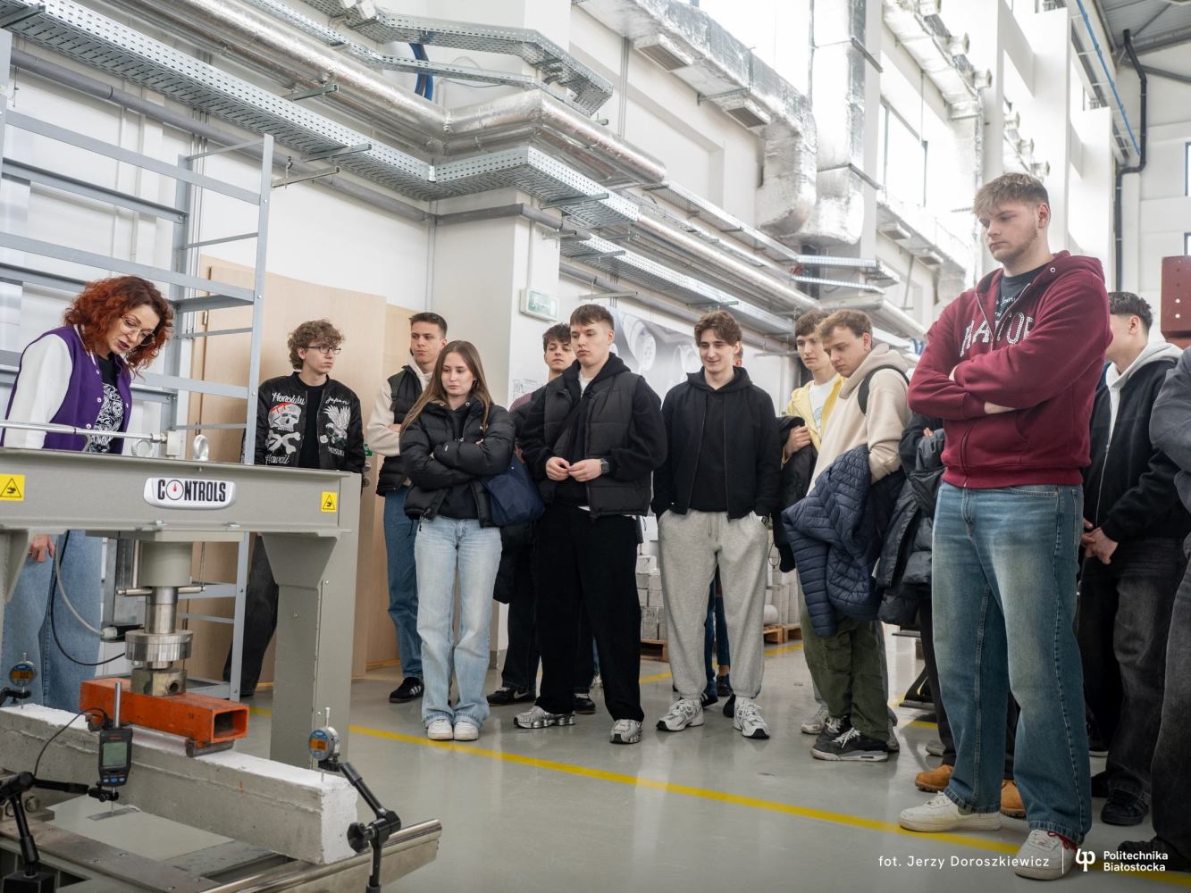 Z uczniami spotkała się Rektor Politechniki Białostockiej dr hab. inż. Marta Kosior-Kazberuk, prof. PB, która prowadziła zajęcia pokazowe na temat siły betonu i stali na Wydziale Budownictwa i Nauk o Środowisku Politechniki Białostockiej.