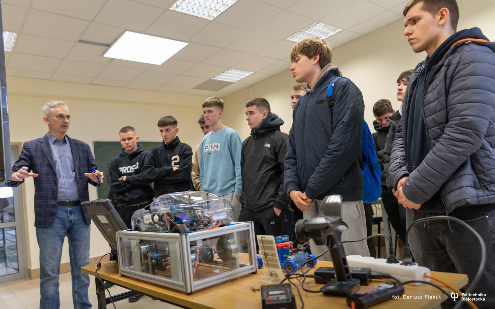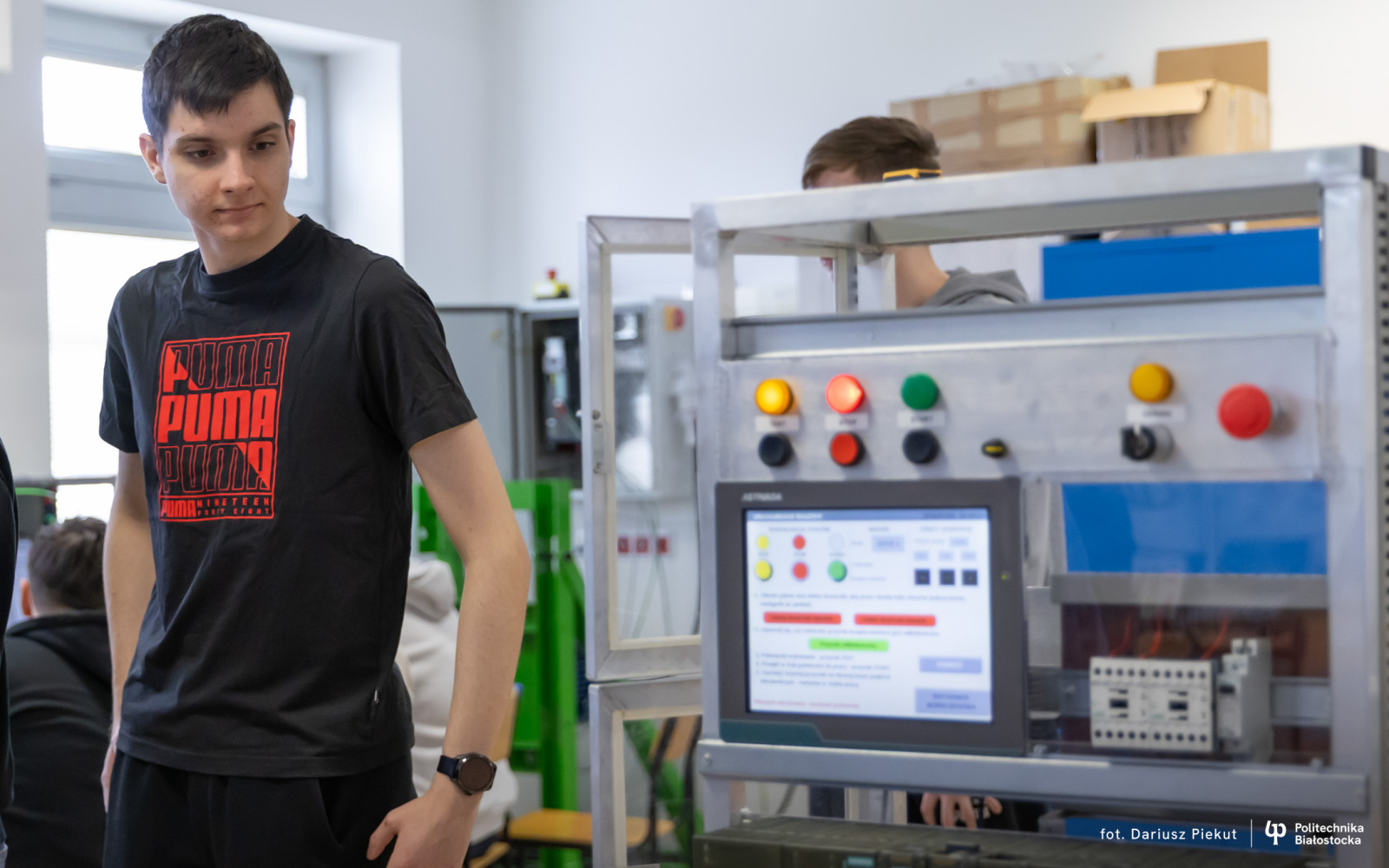 – Przyjechałem na Politechnikę Białostocką, ponieważ chciałem zobaczyć jak wygląda nauka na uczelni technicznej i lepiej poznać kierunki, które mnie interesują – mówi Damian Gołaszewski, uczeń III klasy w Zespole Szkół Mechanicznych w Białymstoku, który wziął udział w zajęciach na Wydziale Elektrycznym. – To szansa, żeby poczuć atmosferę studiów i zastanowić się nad swoją przyszłością.