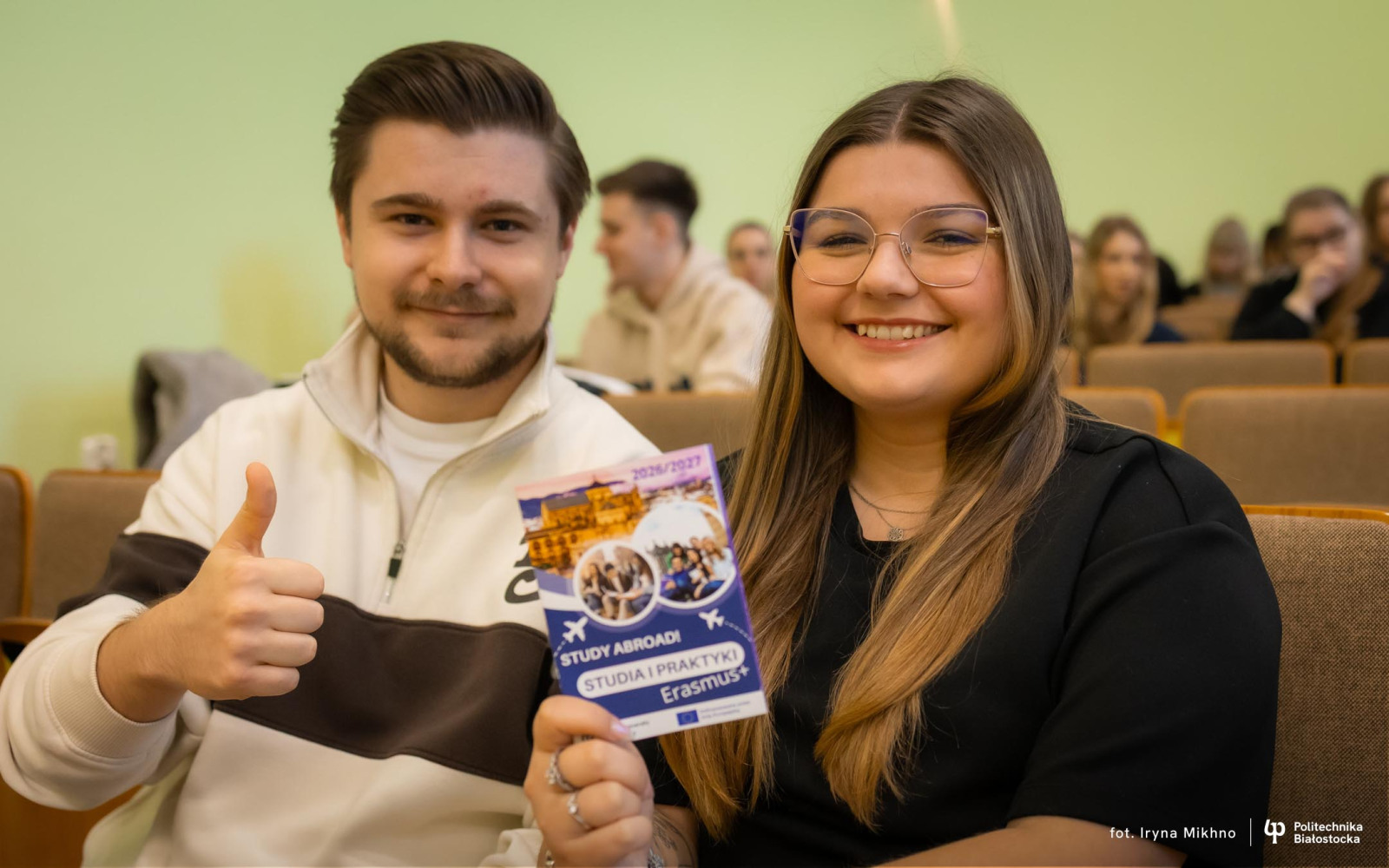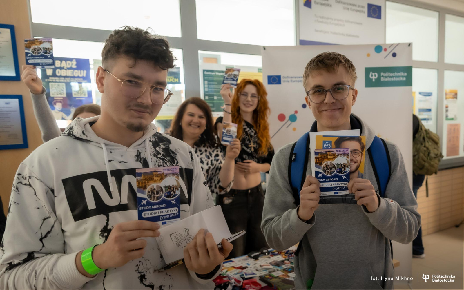 Od 24 lutego do 10 marca 2026 r. na wszystkich wydziałach Politechniki Białostockiej pojawiły się stoiska informacyjne Programu Erasmus+. W salach wykładowych wystąpili wydziałowi koordynatorzy oraz studenci, którzy niedawno wrócili z wymiany. Wszystko po to, aby zainspirować kolejne roczniki do udziału w mobilnościach międzynarodowych. Czytaj więcej: Zapraszamy na wiosenną edycję wydziałowych Erasmus Days!