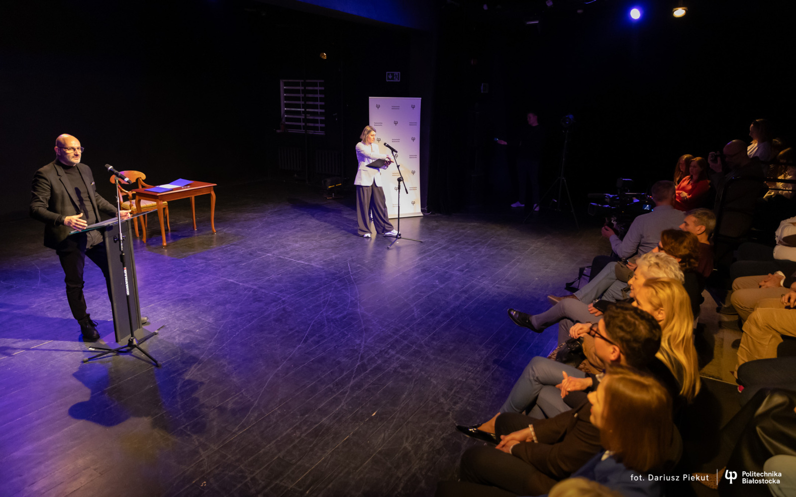 – Współpraca Akademii Teatralnej z Politechniką to nie tylko ekscytujący epizod, ale już cały fascynujący serial – mówi dr hab. inż. Marta Kosior-Kazberuk, prof. PB, Rektor Politechniki Białostockiej. – Na każdy jego „odcinek” czekamy z niecierpliwością. Dziękujemy za zaproszenie do tego projektu, który pokazuje interdyscyplinarne możliwości naszych połączonych potencjałów. Dzięki takim działaniom możemy zaprezentować nasz potencjał jako uczelni technicznej, a jednocześnie jeszcze bardziej zbliżyć się do mieszkańców miasta. Pokazujemy, że Politechnika Białostocka realizuje także inicjatywy uniwersalne, otwarte i służące szerokiemu gronu odbiorców, które – we współpracy z innymi instytucjami – przynoszą nowe, wartościowe efekty.