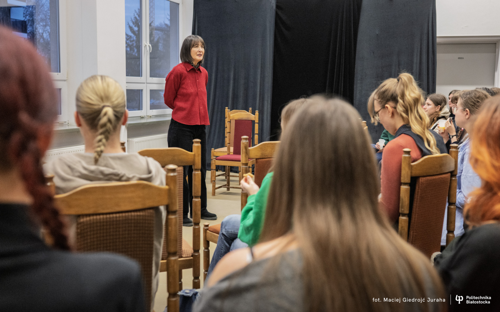 – Uwierzcie mi, nie powinniście mieć kompleksów na temat swojego miejsca w świecie, tego gdzie studiujecie, jaki kierunek studiujecie. Ważne, żebyście robili to z pasją i radością, a nie z przymusu – mówiła dr hab. inż. arch. Tatiana Misijuk, prof. PB. – Dajcie sobie czas na rozwój we własnym tempie. Nasza droga życiowa jest często pochodną tego, jakich ludzi spotykamy. Dlatego warto wyjść zza ekranów smartfonów do świata i korzystać z tych kontaktów.