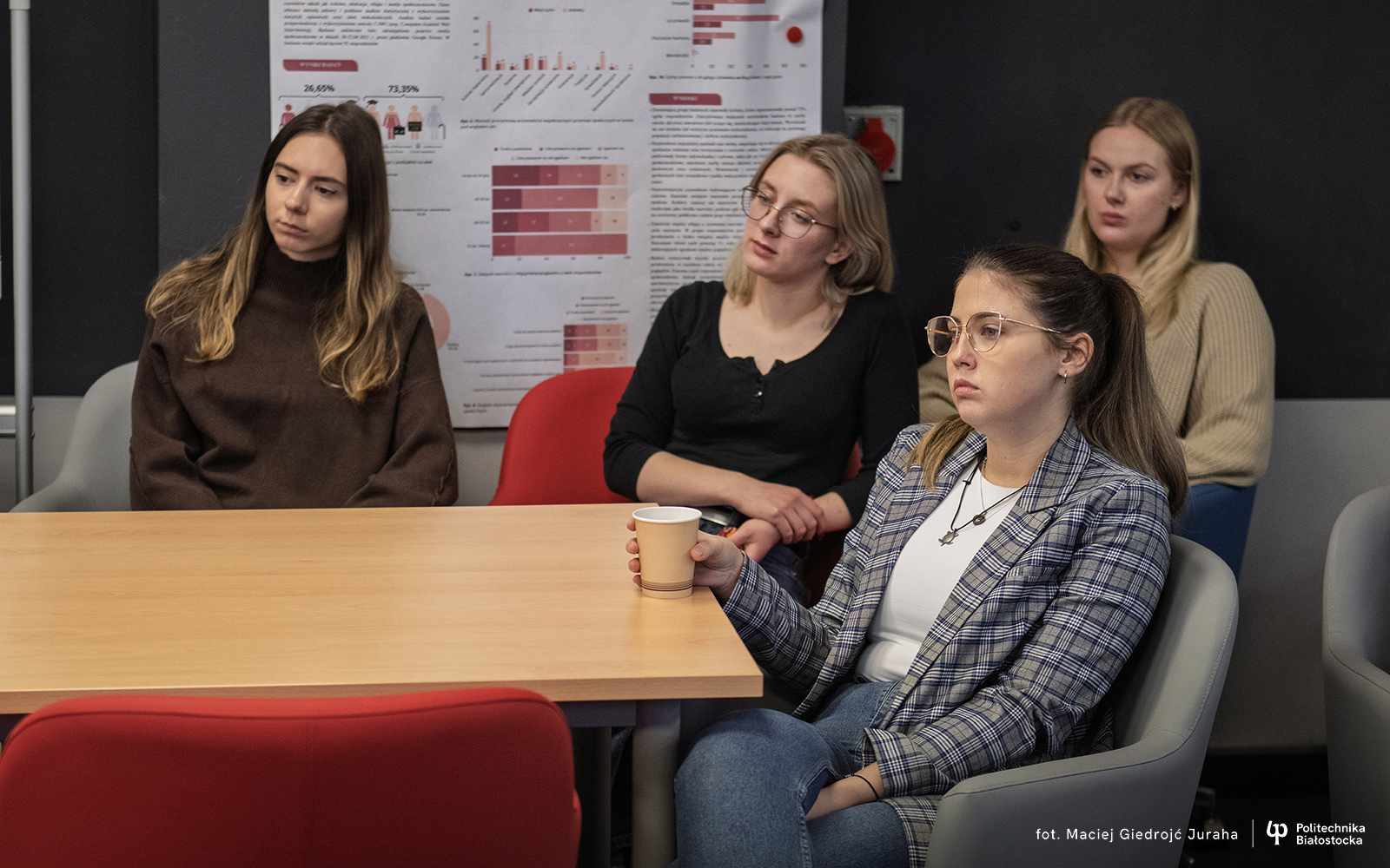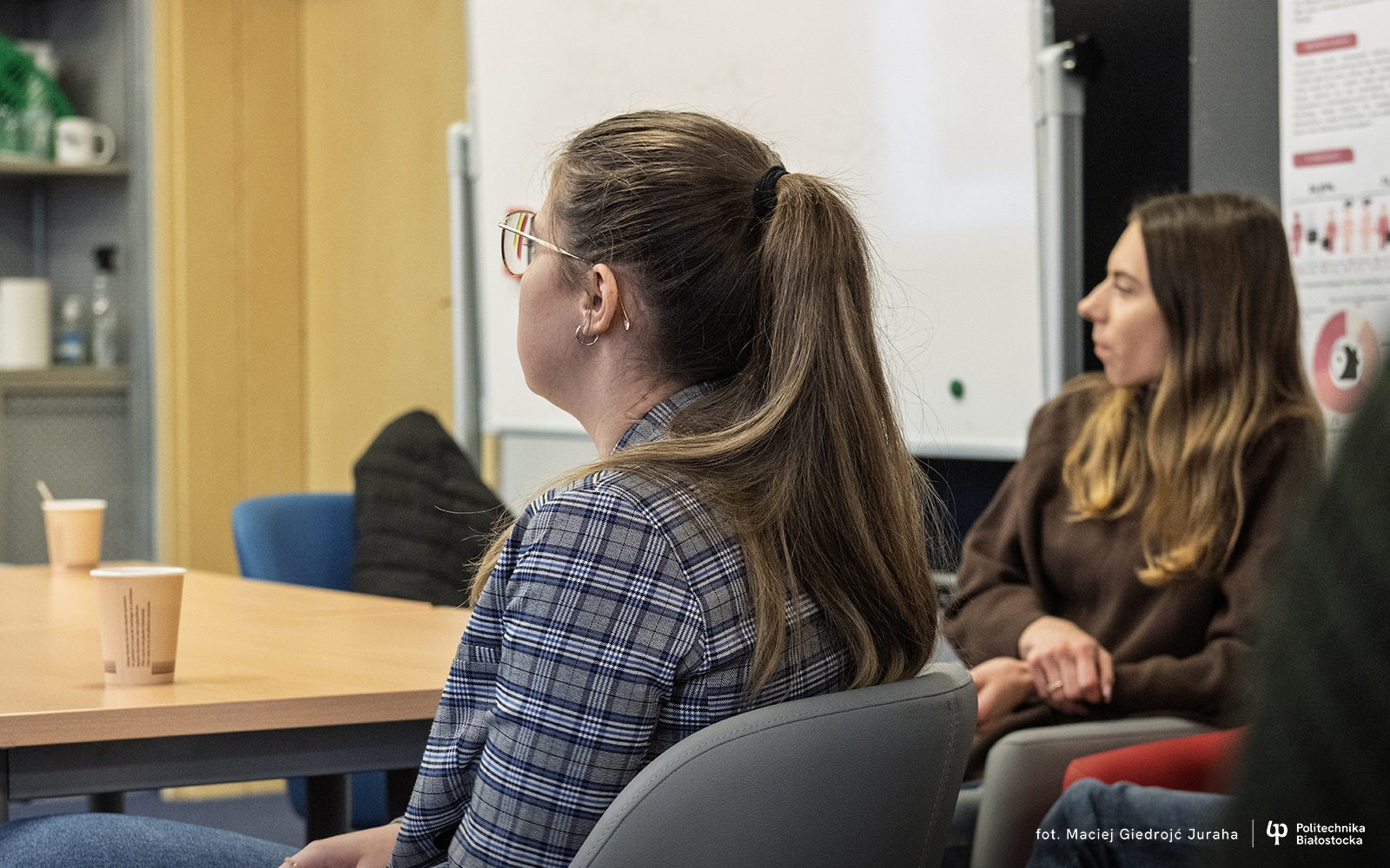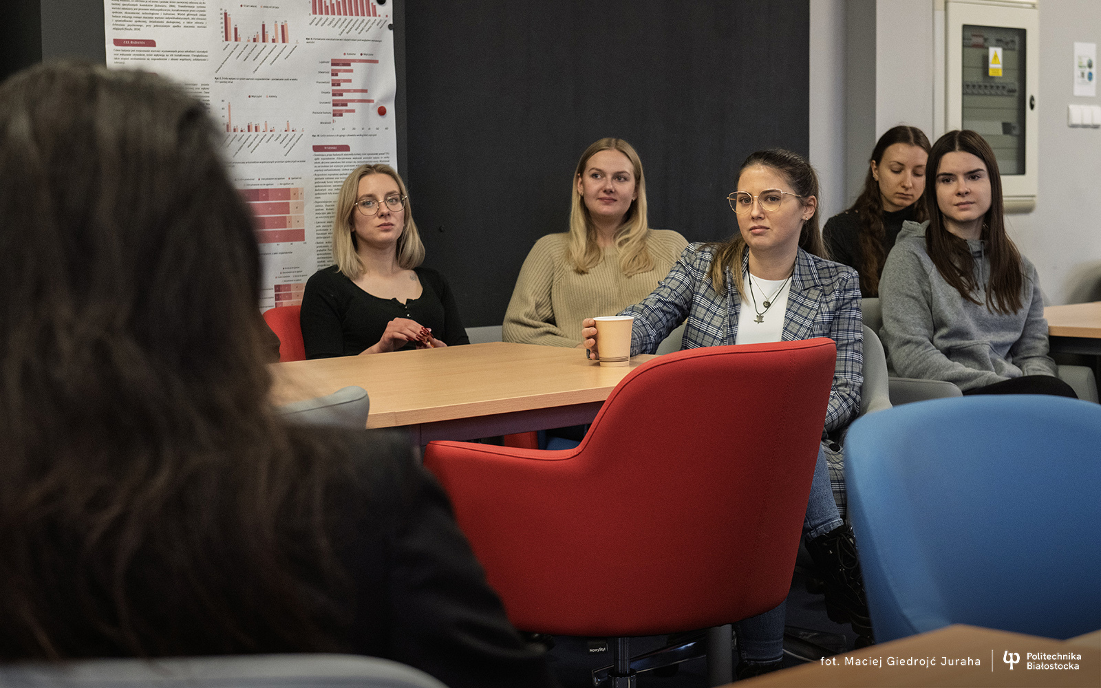 Do rozmów przy Kawce z Profesorem ze studentami usiadły dr hab. Katarzyna Czerewacz-Filipowicz, prof. PB z Wydziału Inżynierii Zarządzania Politechniki Białostockiej oraz prof. dr hab. inż. Jolanta Pauk z Wydziału Mechanicznego Politechniki Białostockiej.