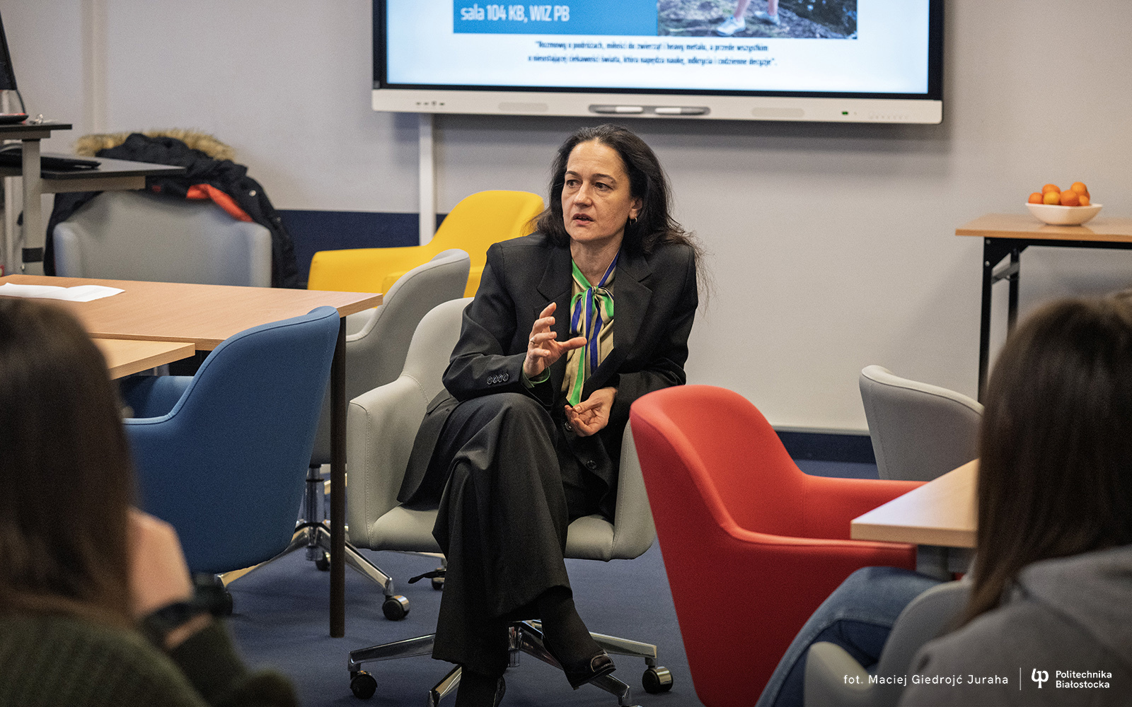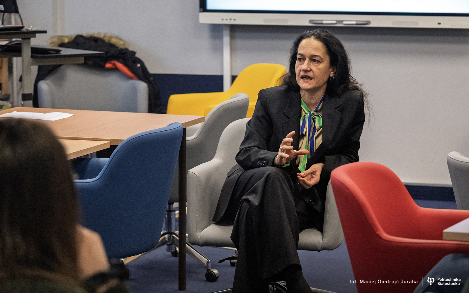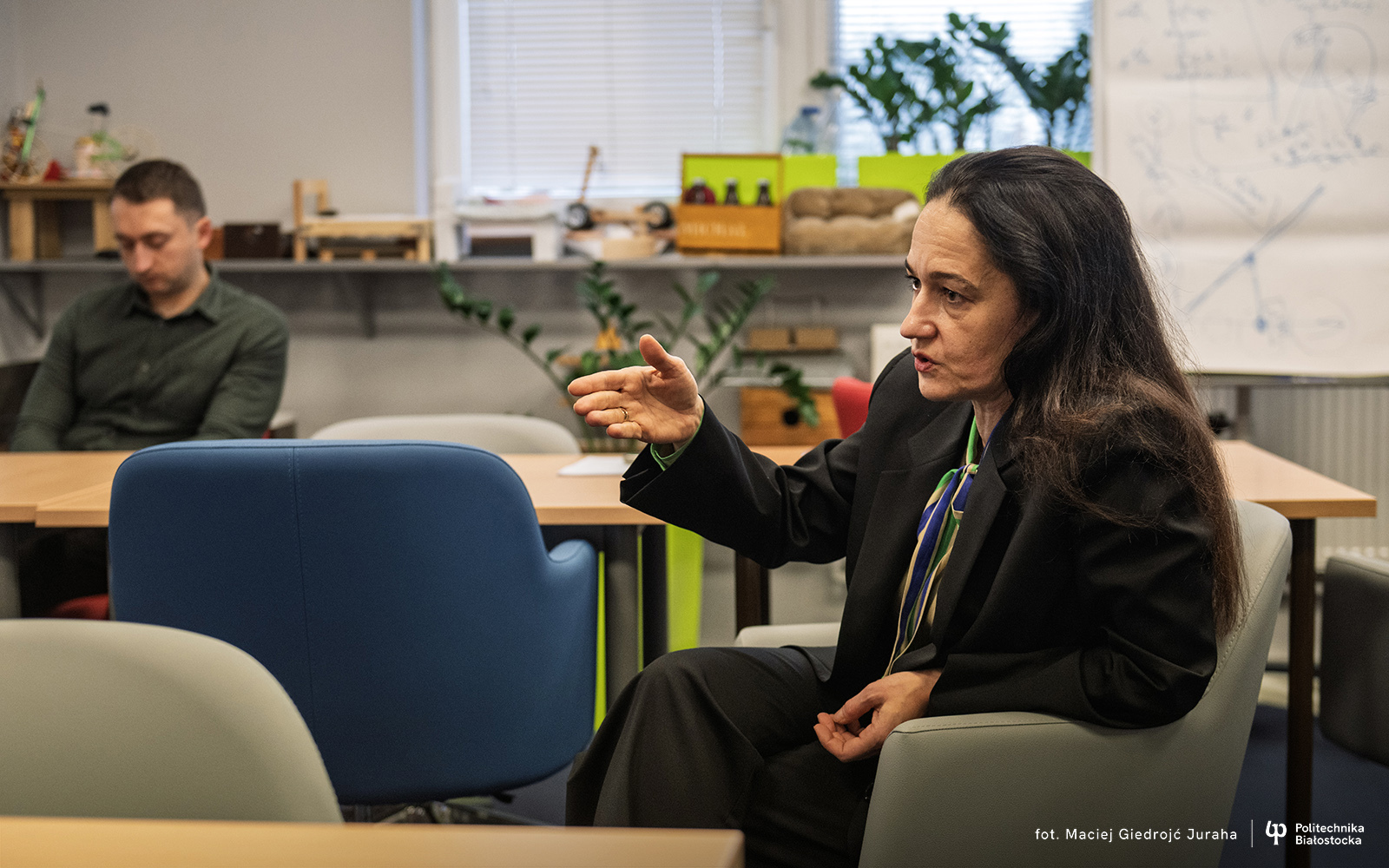 Równolegle na Wydziale Mechanicznym Politechniki Białostockiej rozmowy podczas Kawki z Profesorem prowadziła prof. dr hab. inż. Jolanta Pauk, Dyrektor Instytutu Inżynierii Biomedycznej. Dyskusje dotyczyły kierunków rozwoju studenta, możliwości praktyk, badań realizowanych na Wydziale oraz działań naukowych.