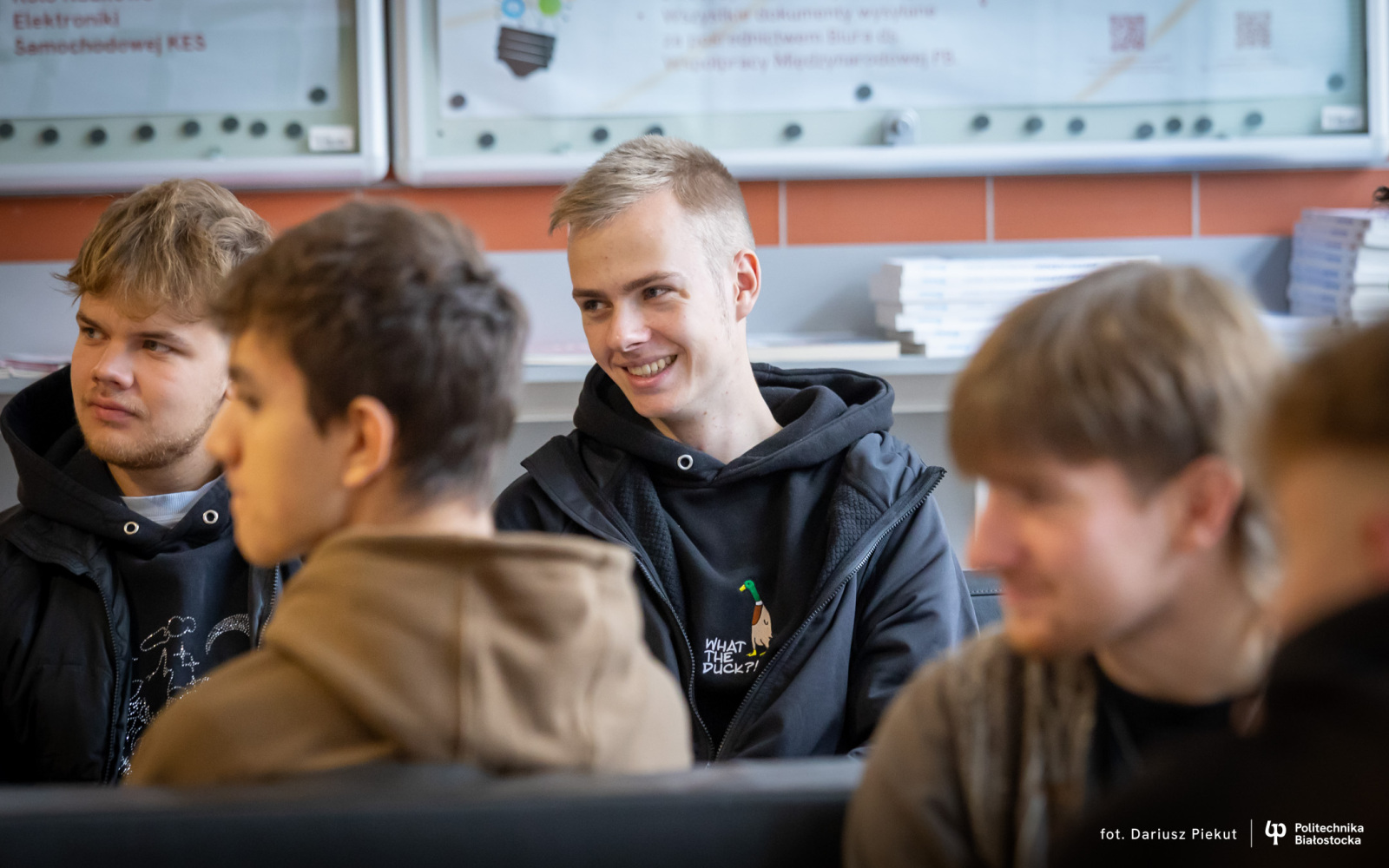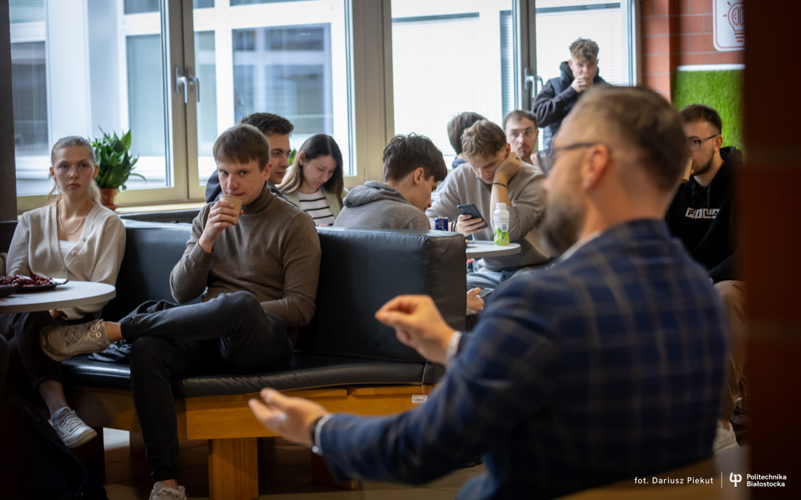 – To bardzo fajny pomysł, można zadać pytanie bez stresu, posłuchać, co inni mają do powiedzenia – mówi Jakub Feder, student pierwszego roku kierunku elektromobilność na Wydziale Elektrycznym Politechniki Białostockiej. – Profesor Żmojda to przyjazny człowiek, od którego można się wiele nauczyć. Widać, że mu zależy, żebyśmy dobrze się czuli – dodaje Jakub.