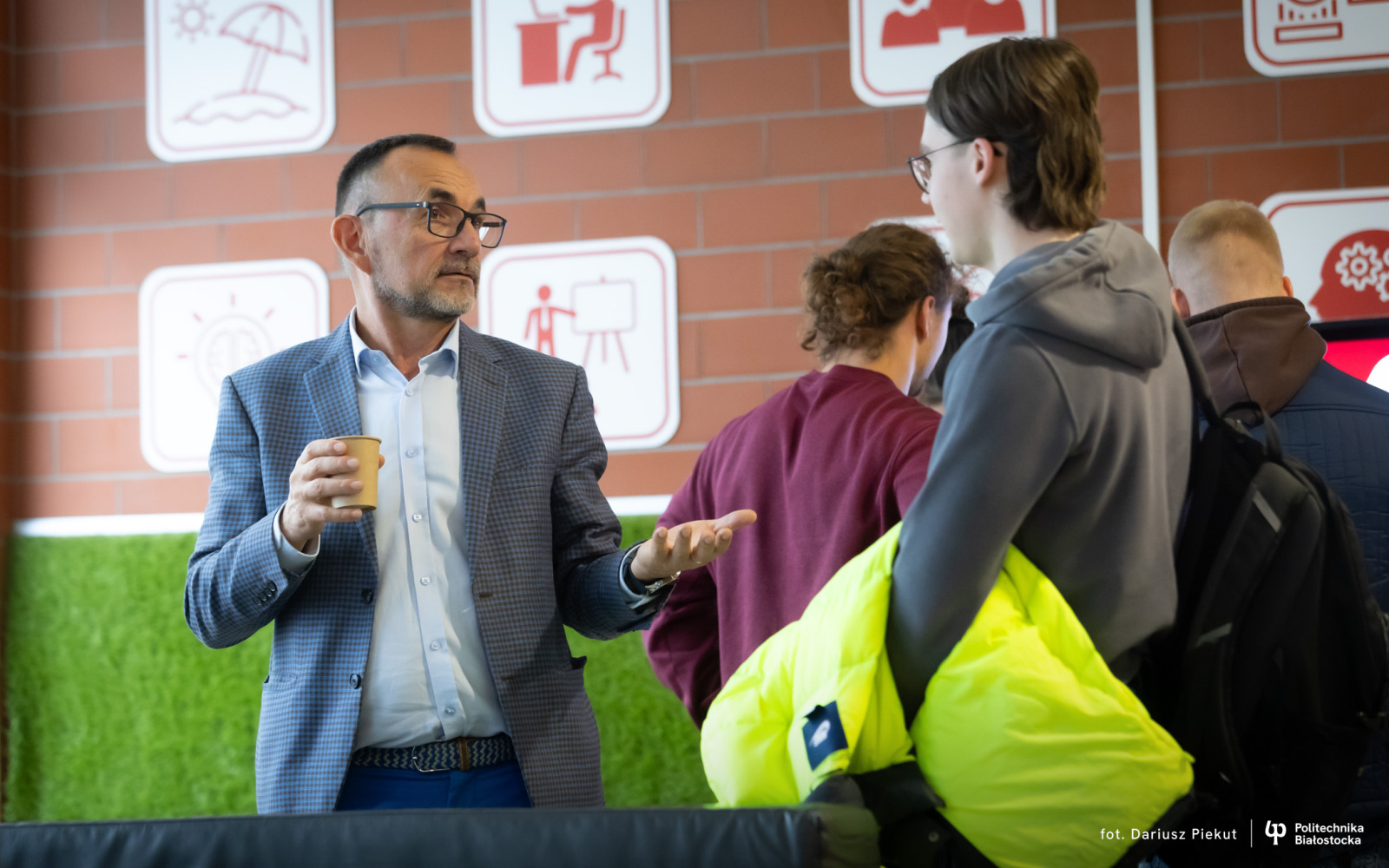 – Na pierwszym roku człowiek jeszcze się rozgląda, uczy się, jak to wszystko działa. Takie spotkanie to dobra okazja, żeby dowiedzieć się, jak wygląda życie na Politechnice Białostockiej i posłuchać doświadczeń starszych studentów – mówi Szymon Motkowski, student pierwszego roku kierunku elektromobilność na Wydziale Elektrycznym Politechniki Białostockiej.