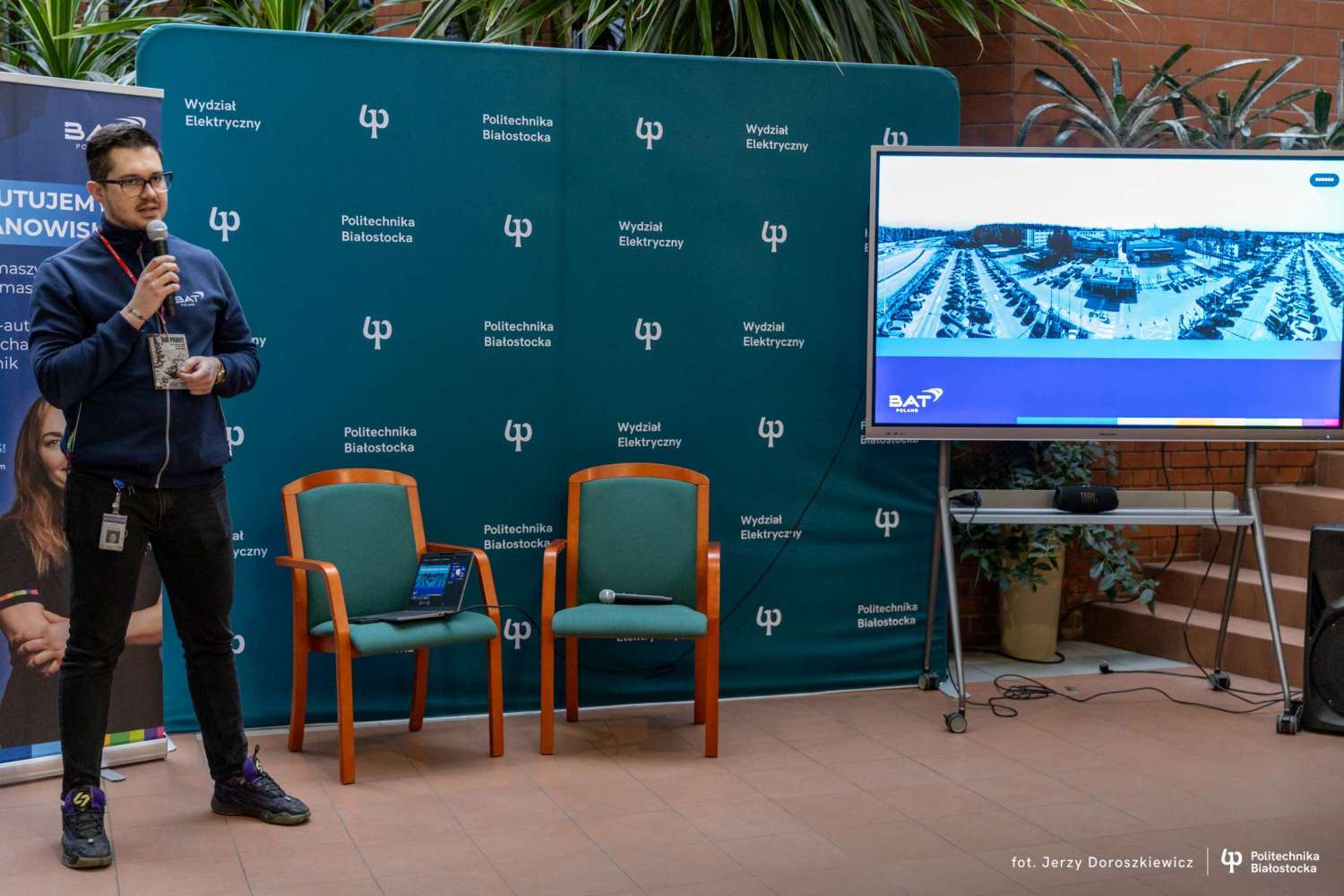 – Interesują mnie staże, ponieważ chciałbym odbyć praktyki zawodowe, zdobyć trochę doświadczenia i może przy okazji podratować swoje finanse – mówi Michał Sadowski, student 1. roku na kierunku elektronika i telekomunikacja na Wydziale Elektrycznym Politechniki Białostockiej. – Firmy, które pojawiły się w uczelni to znane marki. Dzięki takiemu spotkaniu mogę zrobić sobie rozeznanie na rynku pracy, by wiedzieć jak rekrutują pracodawcy.