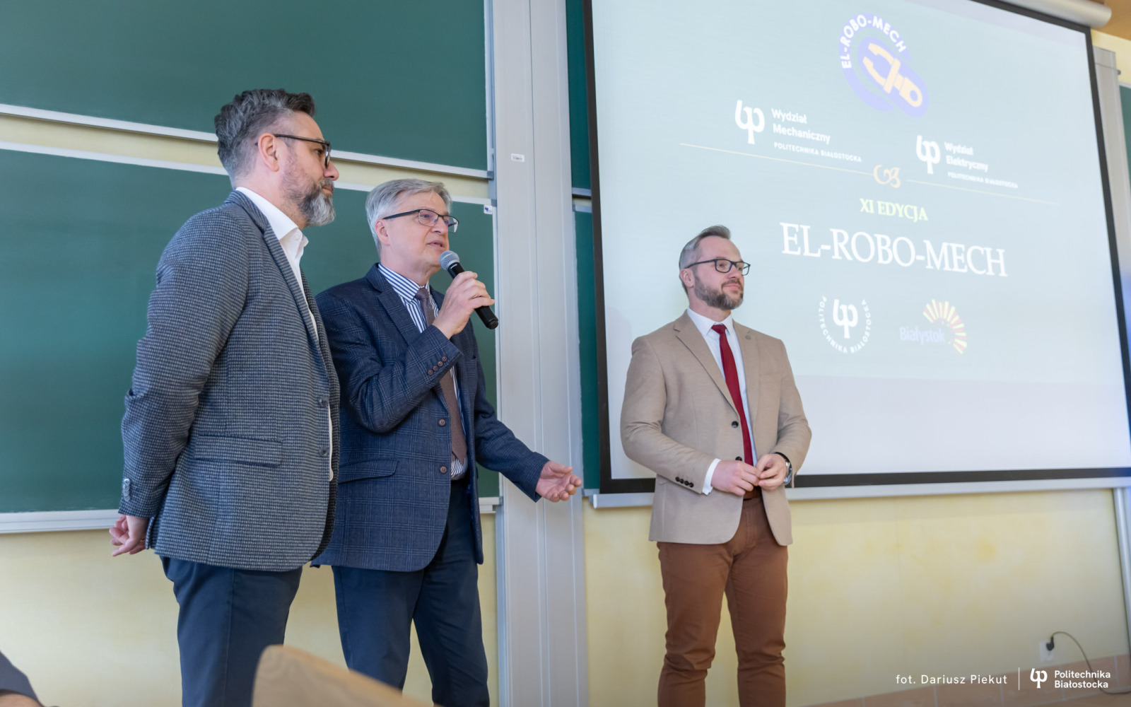 Rozdanie nagród w El-Robo-Mech 2026 – konkursie o indeks Politechniki Białostockiej, odbyło się z udziałem Władz Uczeni oraz Władz Wydziałów Mechanicznego i Elektrycznego Politechniki Białostockiej w dniu 29 kwietnia 2026 r.