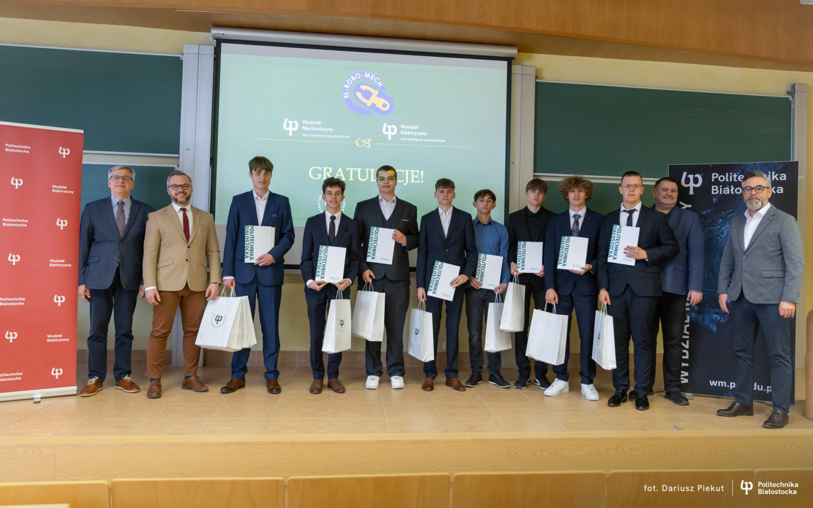 Konkurs o indeks El-Robo-Mech rozstrzygnięty! 34 uczniów ze szkół ponadpodstawowych z całej Polski otrzymało indeksy na studia Politechniki Białostockiej. Wśród nich są młodzi innowatorzy z Jarosławia, Bydgoszczy i Białegostoku, którzy zajęli najwyższe miejsca na podium!