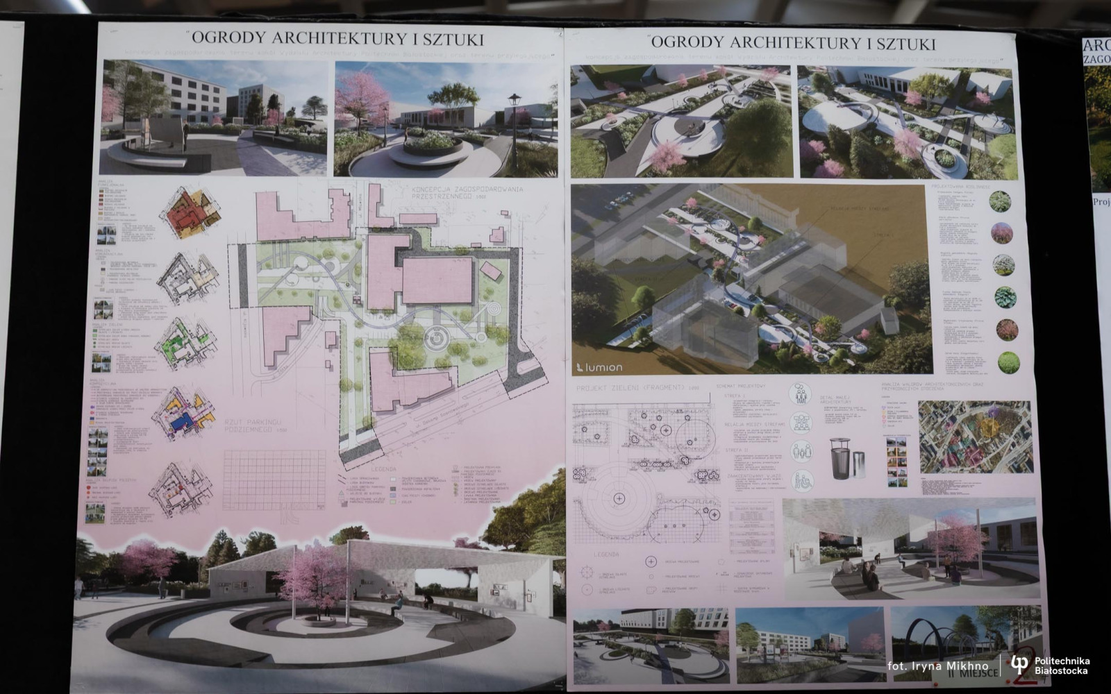 Dziś, spacerując po hali wydziału, wciąż można podziwiać te wizjonerskie projekty. Każda kreska na papierze i każda wizualizacja to nie tylko akademickie zadanie, ale realna obietnica tego, jak wkrótce może zmienić się otoczenie Politechniki Białostockiej – stając się prawdziwym ogrodem sztuki, a studenckie wizje, pełne odwagi i świeżego spojrzenia, stają się częścią publicznej dyskusji o tym, jak powinna wyglądać nowoczesna przestrzeń akademicka i miejska w sercu Białegostoku.