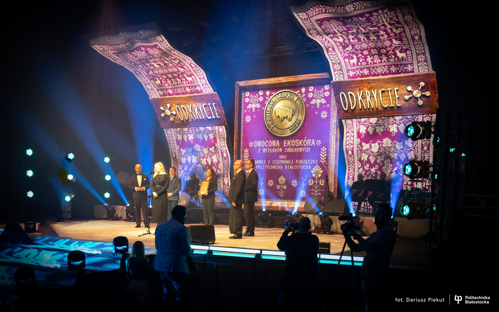– Nasza owocowa ekoskóra to przykład zaangażowania Politechniki Białostockiej w odpowiedzialne i świadome zagospodarowanie odpadów, zgodne z ideą zrównoważonego rozwoju – przypomniał prof. dr hab. inż. Marek Krętowski, Prorektor ds. Nauki Politechniki Białostockiej podczas gali w Operze Podlaskiej. – Szczególnie cieszy nas, że wykorzystanie wytłoków jabłkowych oraz pulpy z czerwonej i czarnej porzeczki do tworzenia praktycznych produktów zostało docenione przez Kapitułę nagrody.