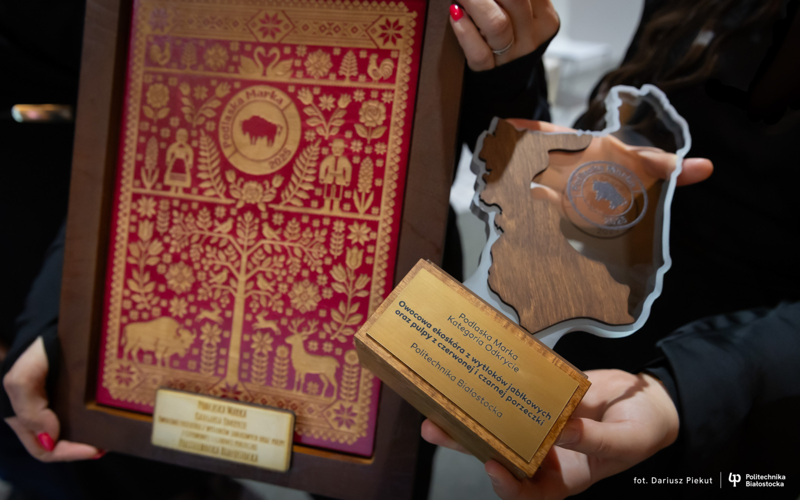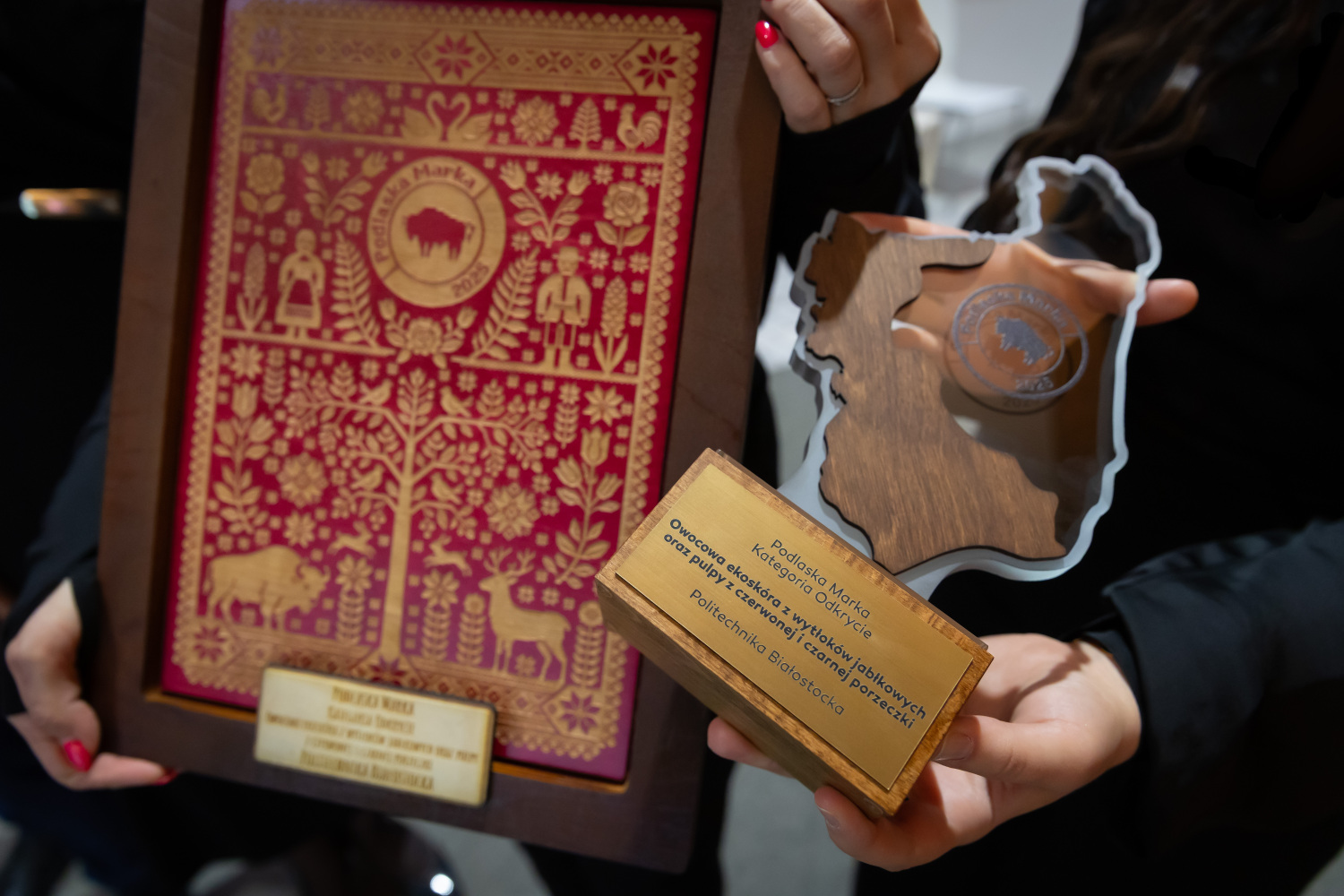 Pomysł Koła Naukowego Rolka z Wydziału Budownictwa i Nauk o Środowisku Politechniki Białostockiej zdobył w konkursie Podlaska Marka 2025 tytuł w kategorii „Odkrycie”. Owocowa ekoskóra z wytłoków jabłkowych oraz pulpy z czerwonej i czarnej porzeczki to w pełni biodegradowalny materiał pochodzenia roślinnego, stanowiący ekologiczną alternatywę dla tradycyjnej i syntetycznej skóry, który może zostać wykorzystany w skali światowej w produkcji rolnej, gdzie pozornie bezużyteczne odpady mogą trafić do gospodarki obiegu zamkniętego.