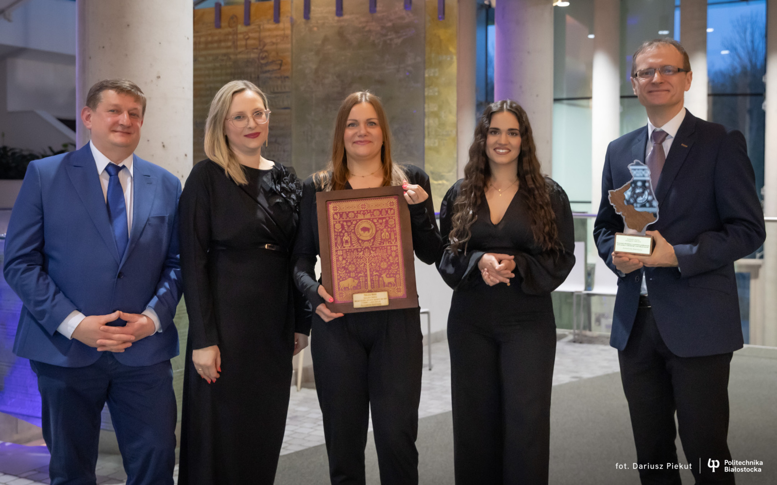 Nagrodę wraz z Prorektorem ds. Nauki odebrali dr hab. inż. Sławomir Obidziński, prof. PB, dr inż. Aneta Sienkiewicz, dr Małgorzata Kowczyk-Sadowy oraz mgr inż. Kinga Koziak.