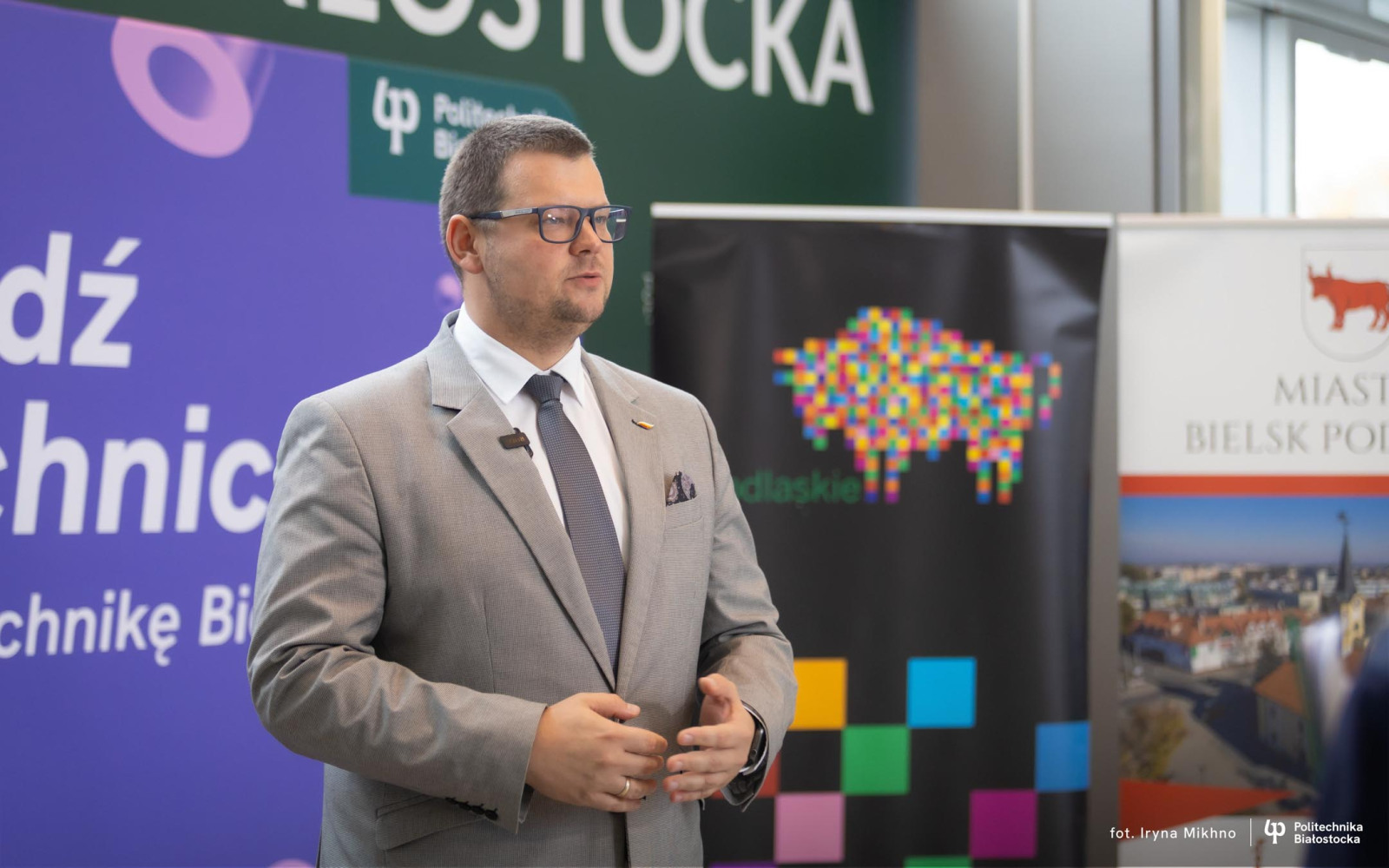 – Cieszymy się, że uczniowie z Białegostoku mogą przychodzić właśnie tu, na Politechnikę Białostocką – mówi Tomasz Klim, Zastępca Prezydenta Miasta Białegostoku odpowiedzialny m.in. za edukację. – Tutaj mogą patrzeć jak wygląda ten duży świat nauki przez trochę mniejszy pryzmat, mogą wejść na uczelnię, mogą zobaczyć jak wygląda aula, mogą zobaczyć jak wygląda laboratorium, mogą spotkać się z naukowcami i mogą zarazić się bakcylem nauki.