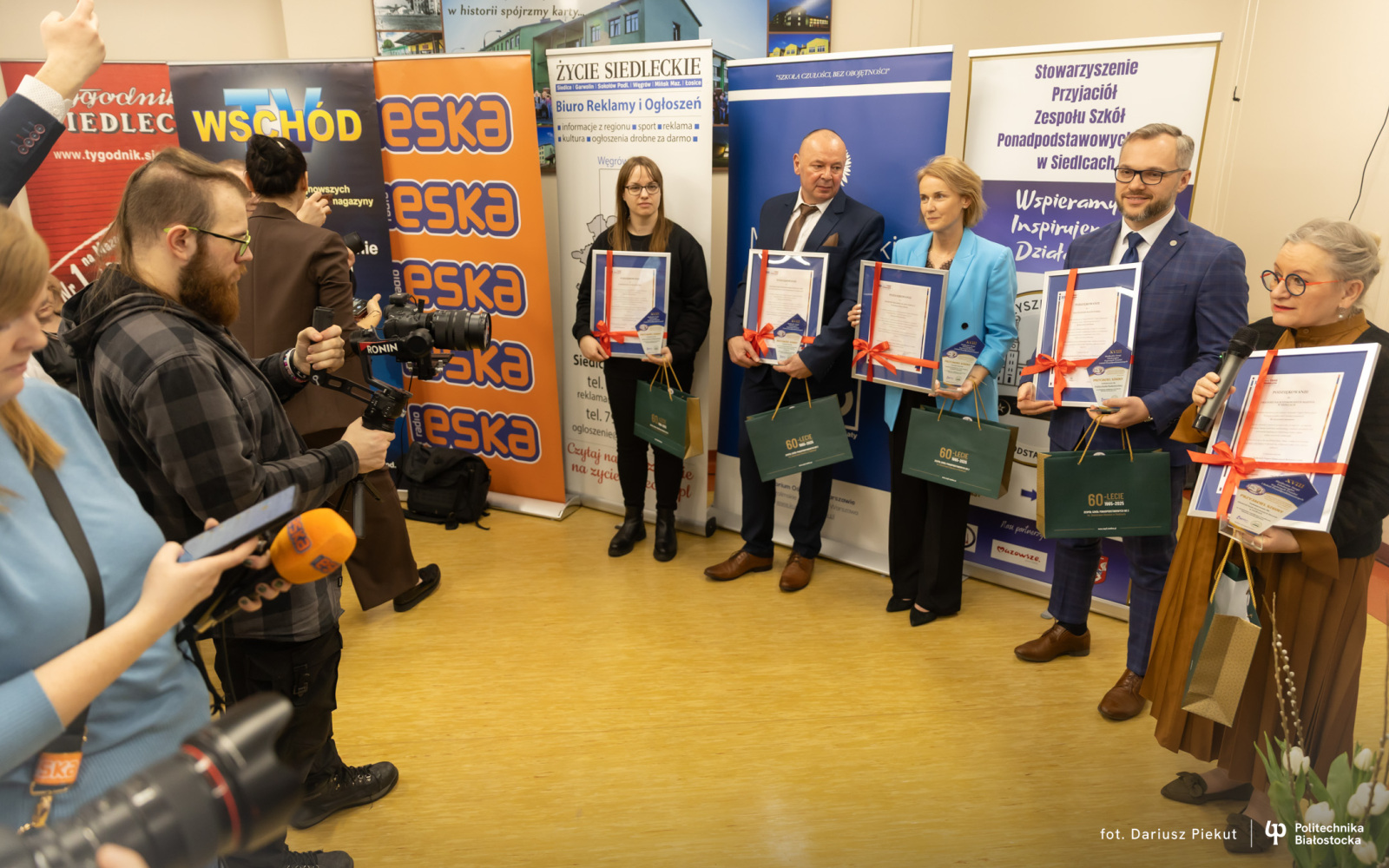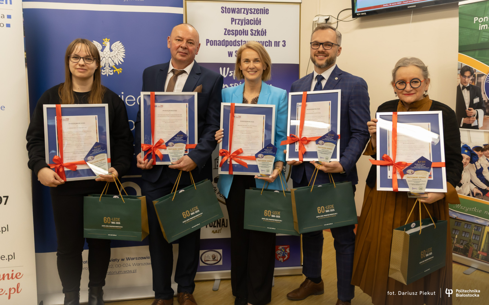 Podczas Siedleckich Targów Edukacyjnych organizatorzy wyróżnili 5 instytucji edukacyjnych za wieloletnią, aktywną współpracę. Politechnika Białostocka znalazła się w gronie uczelni uhonorowanych specjalną Nagrodą Jubileuszową – od lat odwiedza szkołę w Siedlcach, budując relacje akademickie z młodzieżą szkół ponadpodstawowych, doradcami zawodowymi oraz rodzicami i nauczycielami. Statuetkę w imieniu Rektor Politechniki Białostockiej dr hab. inż. Marty Kosior-Kazberuk, prof. PB odebrał Prorektor ds. Studenckich Politechniki Białostockiej dr hab. inż. Jacek Mariusz Żmojda, prof. PB.