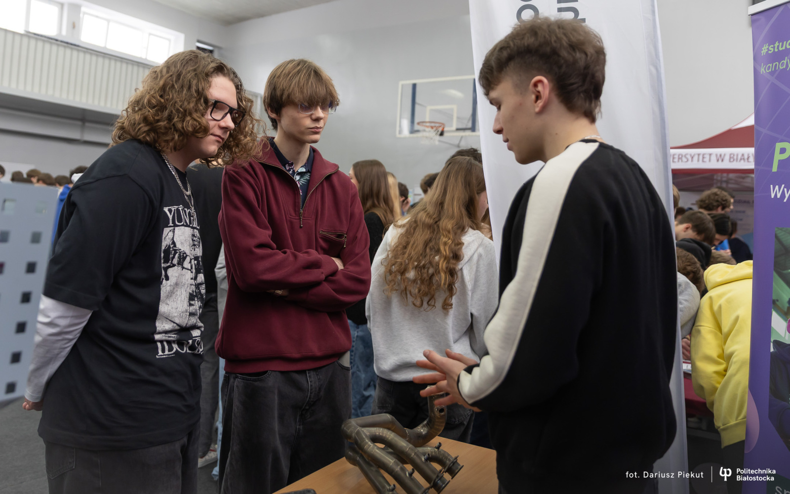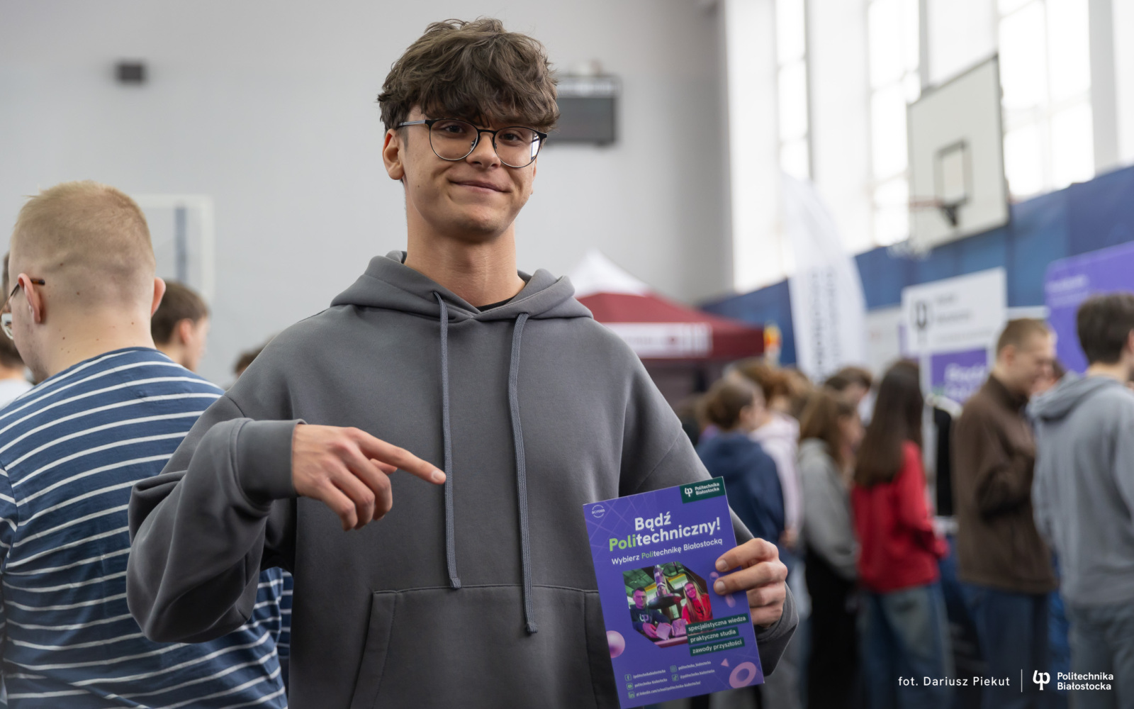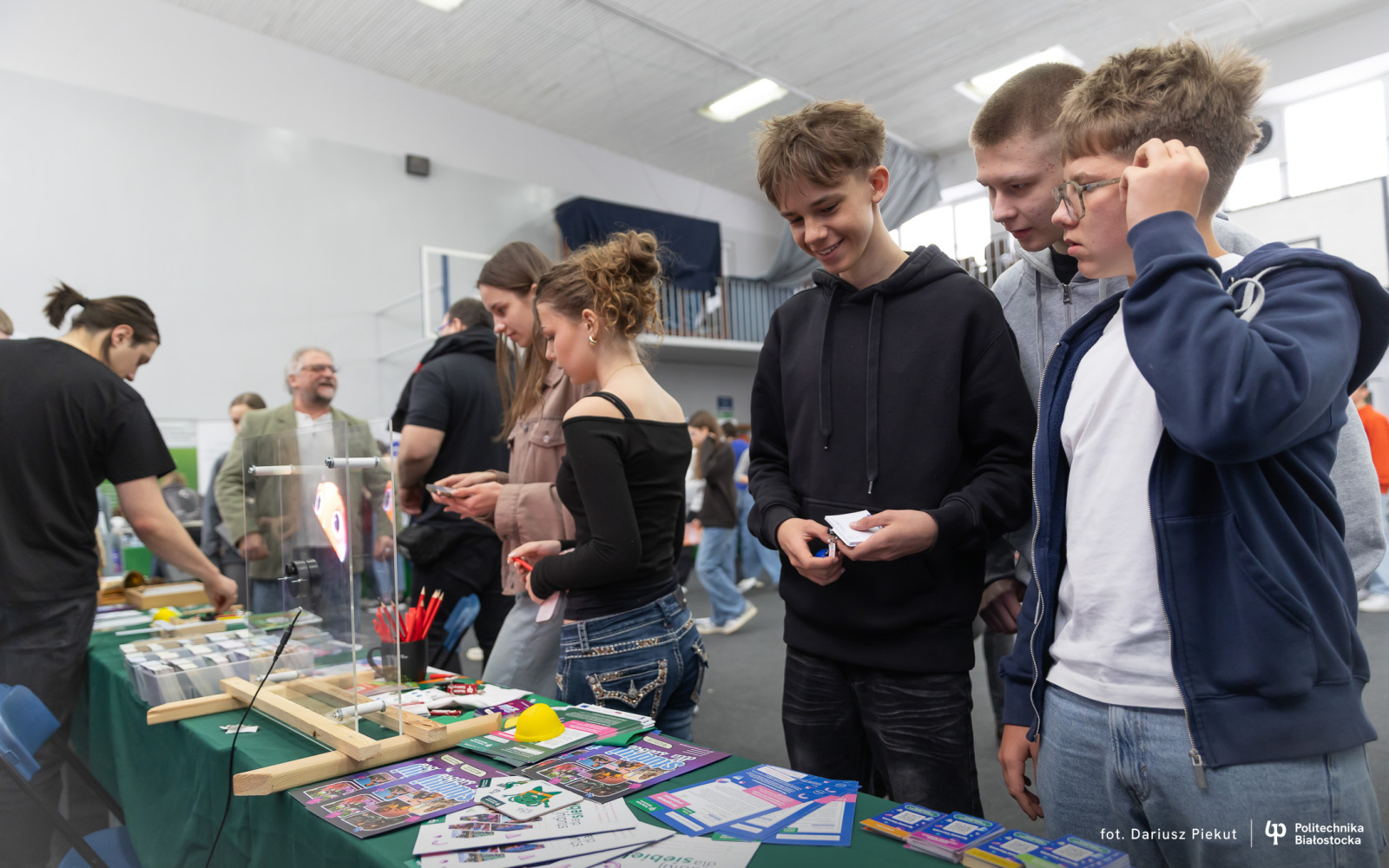 – Jestem w klasie o profilu matematyczno-fizycznym, więc zainteresowały mnie kierunki ścisłe Politechniki Białostockiej – mówi Dominik Charkiewicz, uczeń klasy maturalnej w II LO w Białymstoku. – Jestem pod wrażeniem dużego wyboru studiów, to naprawdę poważny atut, ponieważ każdy znajdzie tu coś dla siebie. Stoisko uczelni też się wyróżnia i można dowiedzieć się ciekawych rzeczy, które skłaniają do myślenia w inny sposób o swoim rozwoju.