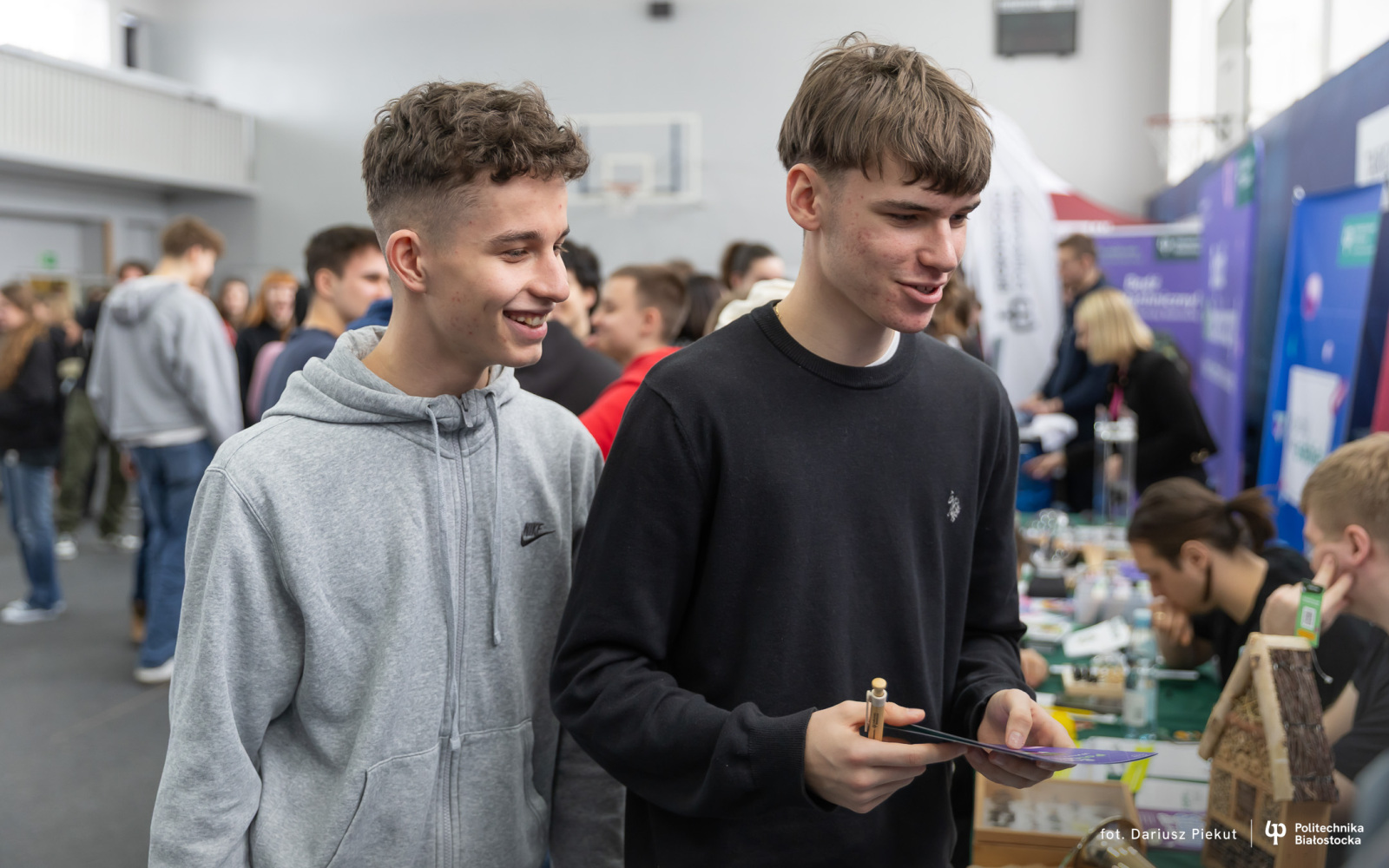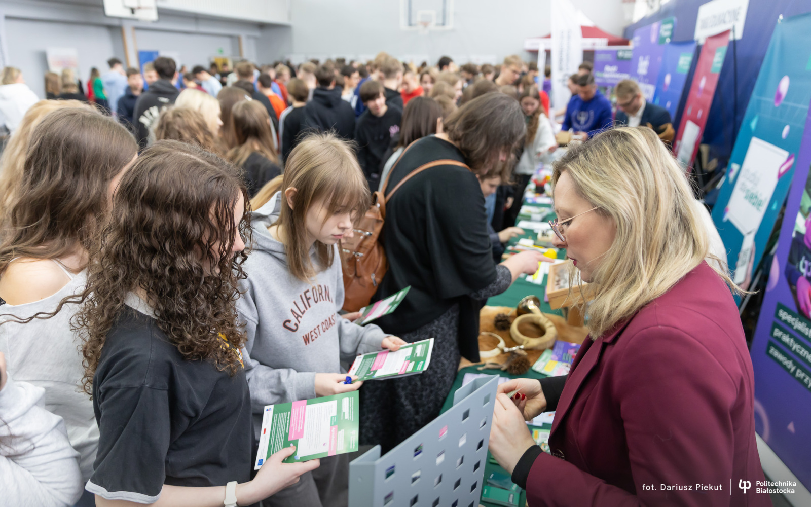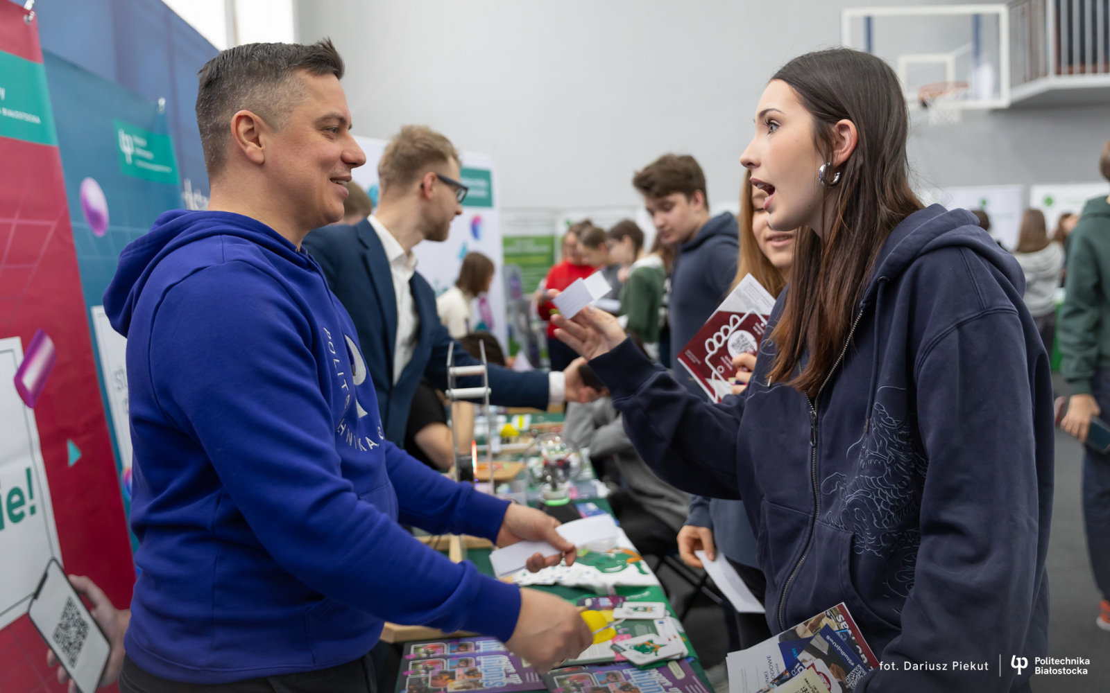 – Bardzo mnie zainteresowało stoisko Politechniki Białostockiej, szczególnie kierunek biotechnologia, który pozwala w przyszłości na znalezienie pracy w wielu branżach – mówi uczennica Maria Jaroszewicz. – Na targach dowiedziałam się też jak wygląda rekrutacja w tej uczelni i jakie przedmioty dodatkowe są brane pod uwagę w punktacji. Mam nadzieję, że będę mogła tu studiować.
