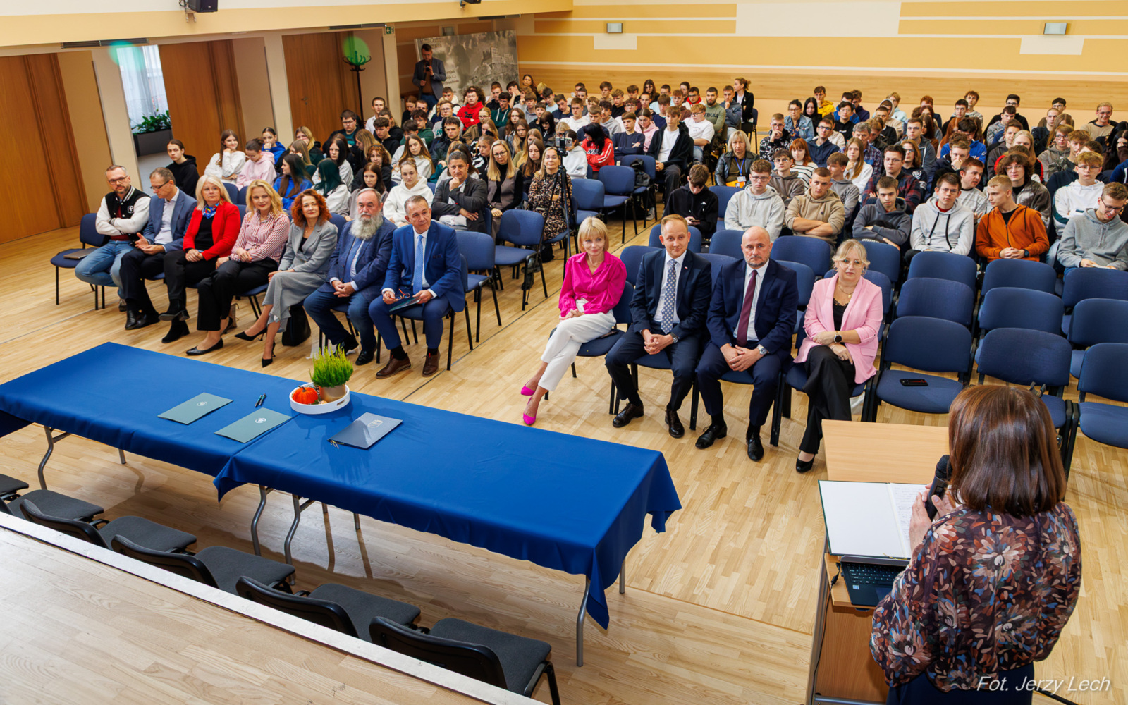 Uroczyste podpisanie umowy odbyło się 9 października 2025 r. w auli Augustowskiego Centrum Edukacyjnego w Augustowie. Dokument sygnowali Grzegorz Augusewicz, Dyrektor Szkoły i dr hab. inż. Marta Kosior-Kazberuk, prof. PB, Rektor Politechniki Białostockiej.