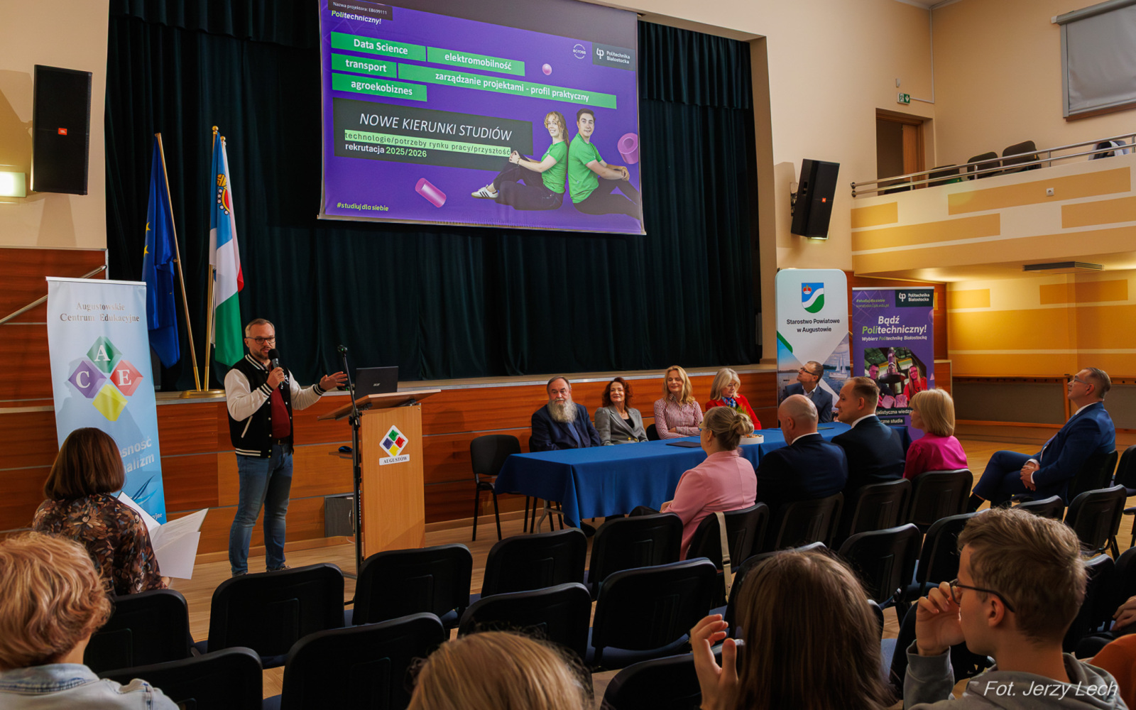Uroczyste podpisanie umowy odbyło się 9 października 2025 r. w auli Augustowskiego Centrum Edukacyjnego w Augustowie. Dokument sygnowali Grzegorz Augusewicz, Dyrektor Szkoły i dr hab. inż. Marta Kosior-Kazberuk, prof. PB, Rektor Politechniki Białostockiej.