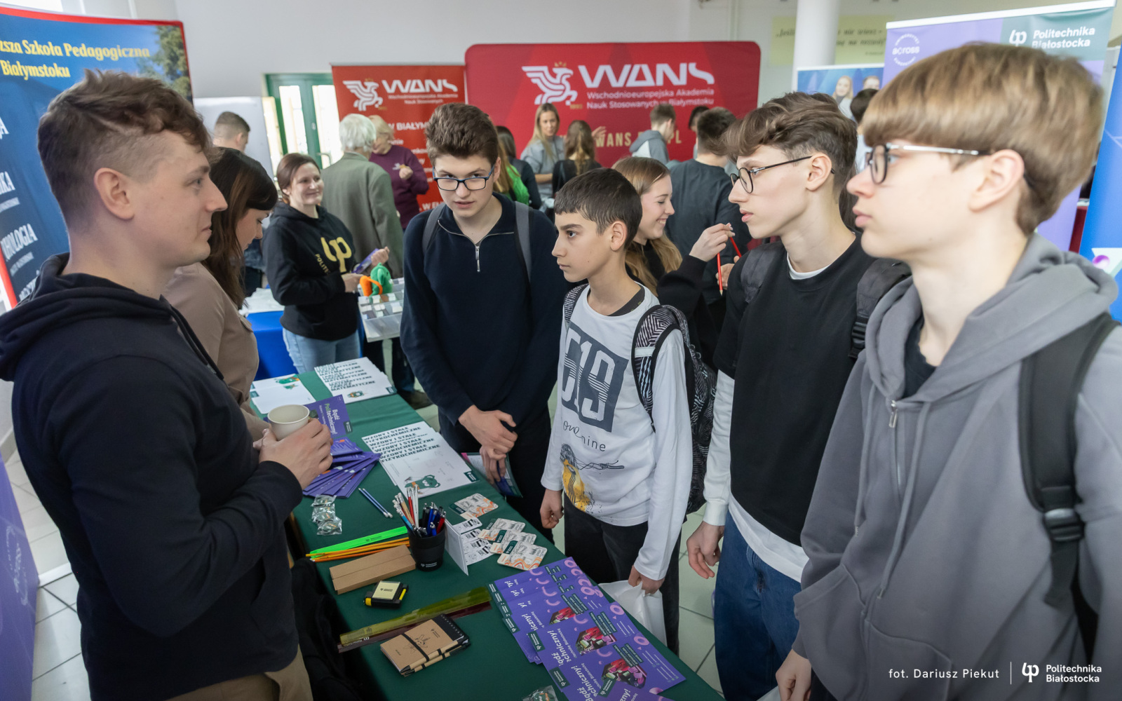 Stoisko, eksperci i rozmowy na ważne tematy. Jakie studia wybrać, by być konkurencyjnym na rynku pracy? Jakiej profesji nie zastąpi sztuczna inteligencja? Czy muszę być orłem z matematyki, by dostać się na studia? Ile osób, tyle pytań. Młodzież zgromadzona w Zespole Szkół w Siemiatyczach odwiedziła stoisko Politechniki Białostockiej szukając odpowiedzi na pytania dotyczące życiowych planów. Część z nich podjęła już decyzję w kwestii studiów.