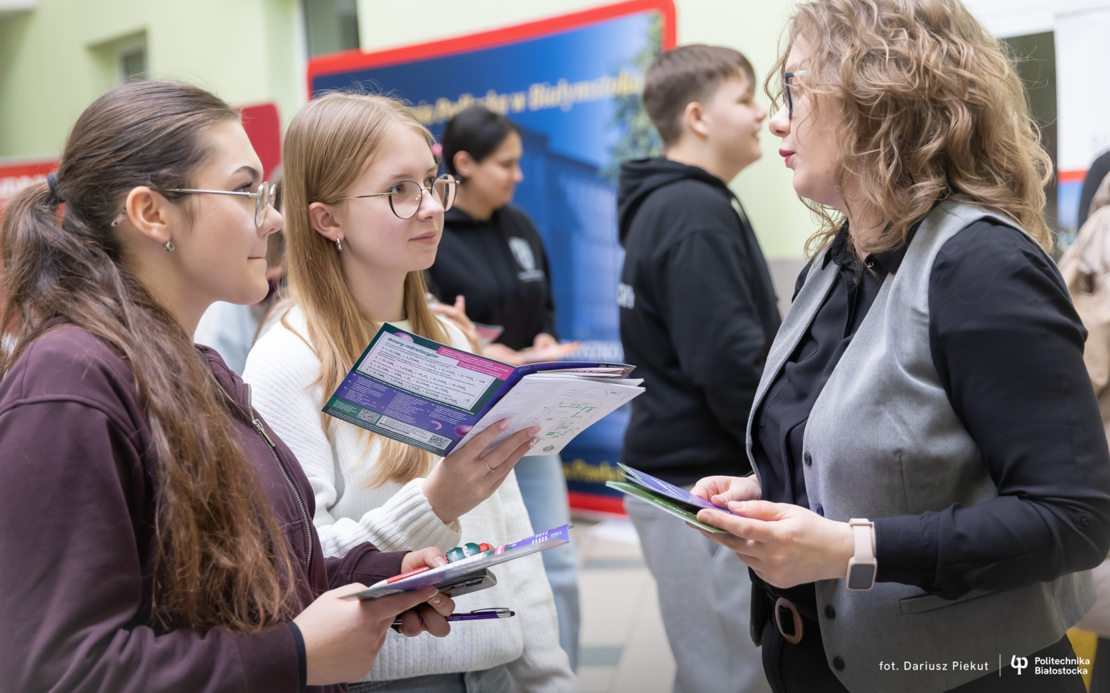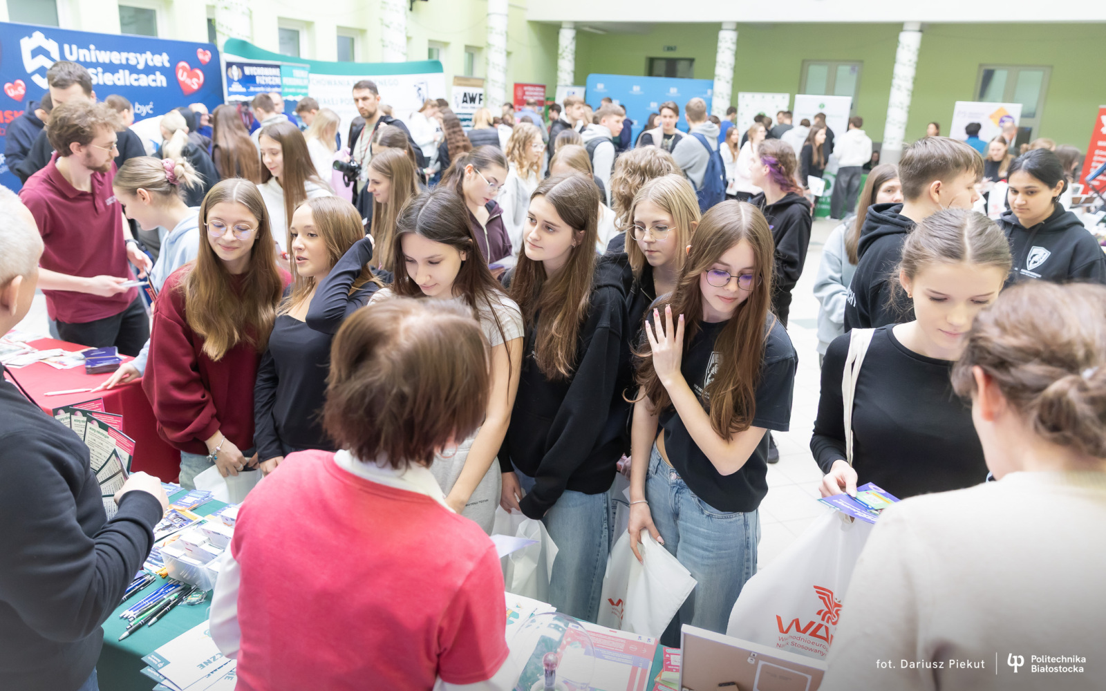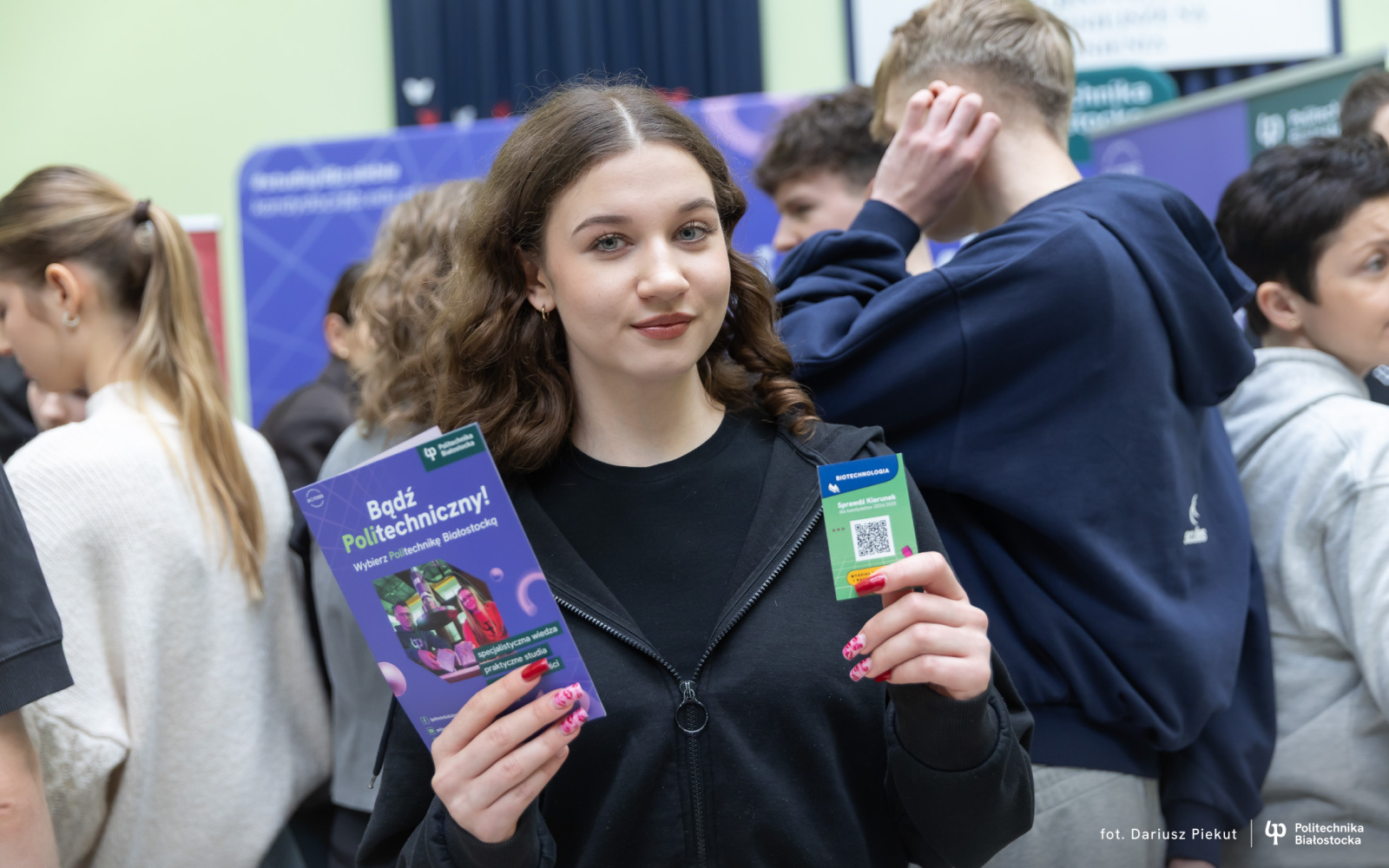 – Przyjechałam tu, żeby poszukać uczelni dla siebie i myślę, że będzie nią Politechnika Białostocka – mówi Natalia Brzozowska, uczennica I Liceum Ogólnokształcącego im. Tadeusza Kościuszki w Bielsku Podlaskim. – Chciałabym studiować zarządzanie, bo widzę w tym kierunku swoją przyszłość i możliwość rozwoju. To branża, która daje gwarancję zatrudnienia niemal wszędzie, a ja chcę mieć pewność, że po dyplomie nie będę musiała szukać pracy przez rok.
