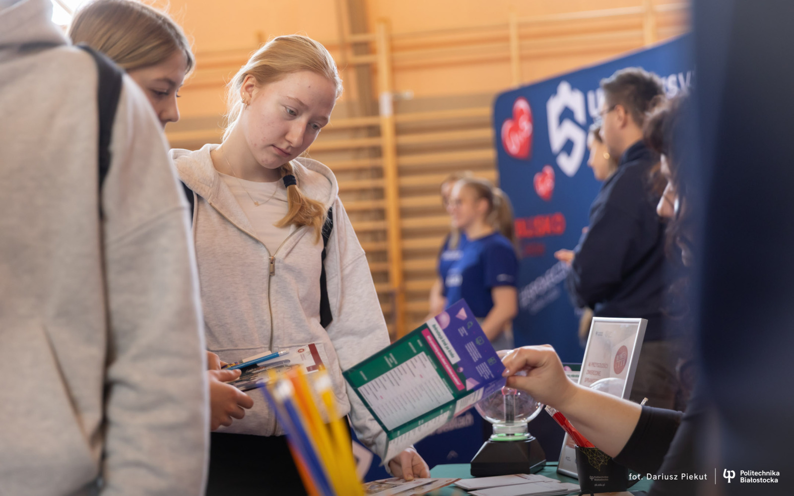 – Przyjechałem na targi, ponieważ chciałem dowiedzieć się więcej o kierunku mechatronika na Wydziale Mechanicznym Politechniki Białostockiej – mówi uczeń Bartosz Gosfeld. – Przy stoisku uczelni dowiedziałem się o kryteriach przyjęcia na studia, ale i upewniłem się, że to słuszny wybór, pytając o program studiów i dostęp do nowoczesnych narzędzi.