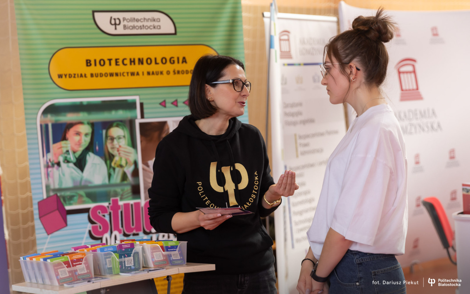Przy stoisku Politechniki Białostockiej będzie można poznać ofertę 31 kierunków studiów inżynierskich i licencjackich. Przedstawiciele uczelni przybliżą etapy rekrutacji na studia. Maturzyści 2026 dowiedzą się m.in. jakie przedmioty zdawać na maturze, aby zwiększyć swoje szanse dostania się na wymarzony kierunek studiów. Uczniowie techników dowiedzą się, jak w rekrutacji wykorzystać wyniki egzaminów zawodowych. Zainteresowani studiami na kierunkach architektura, architektura wnętrz oraz grafika – poznają zasady dotyczące egzaminu wstępnego z rysunku.