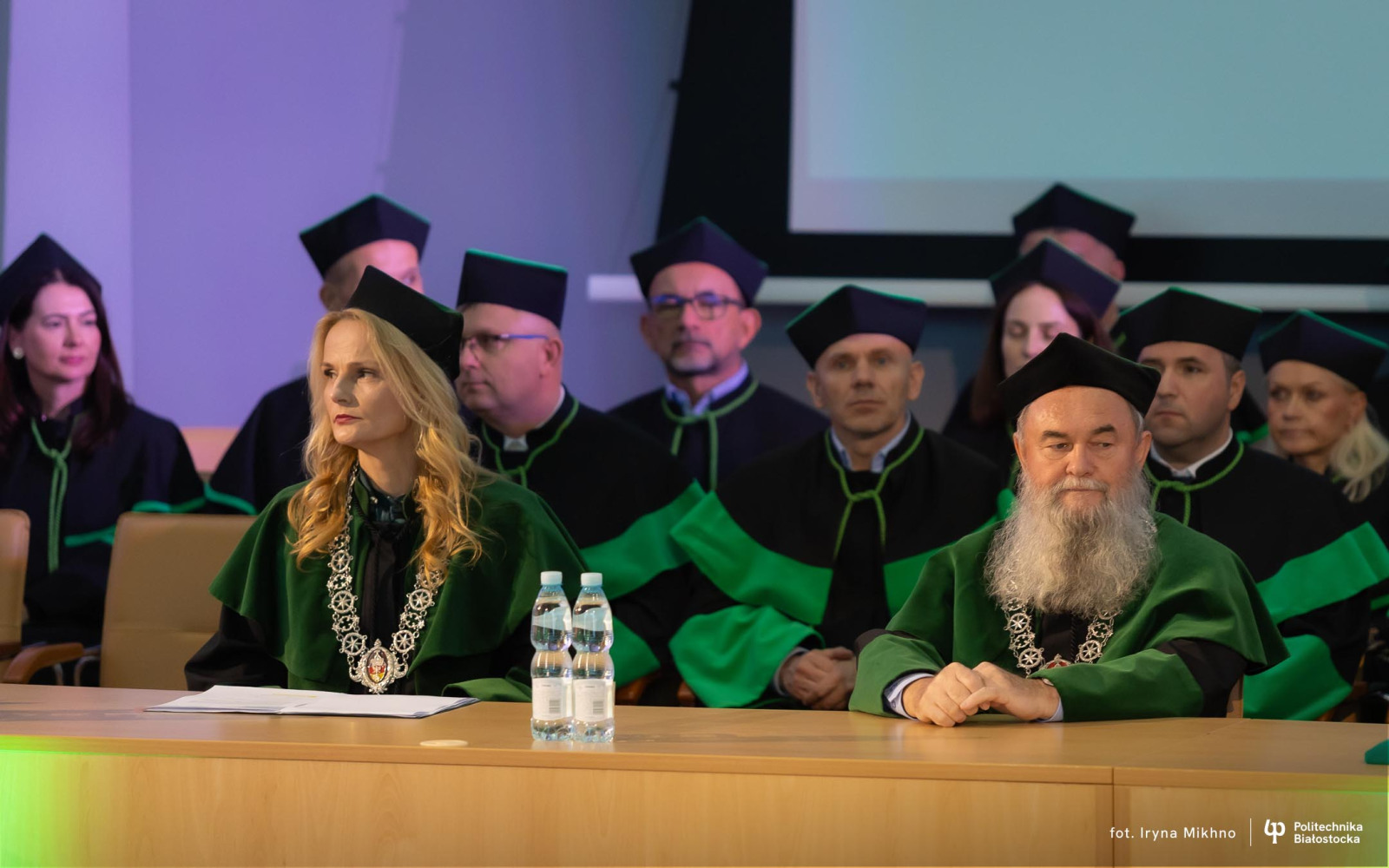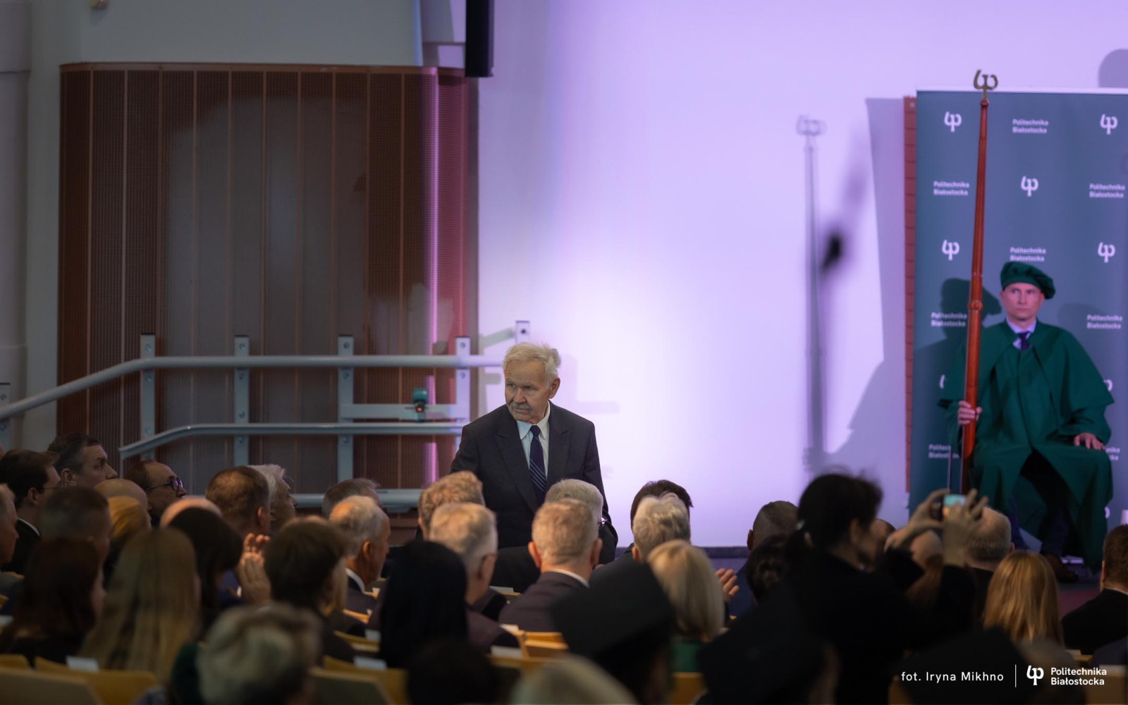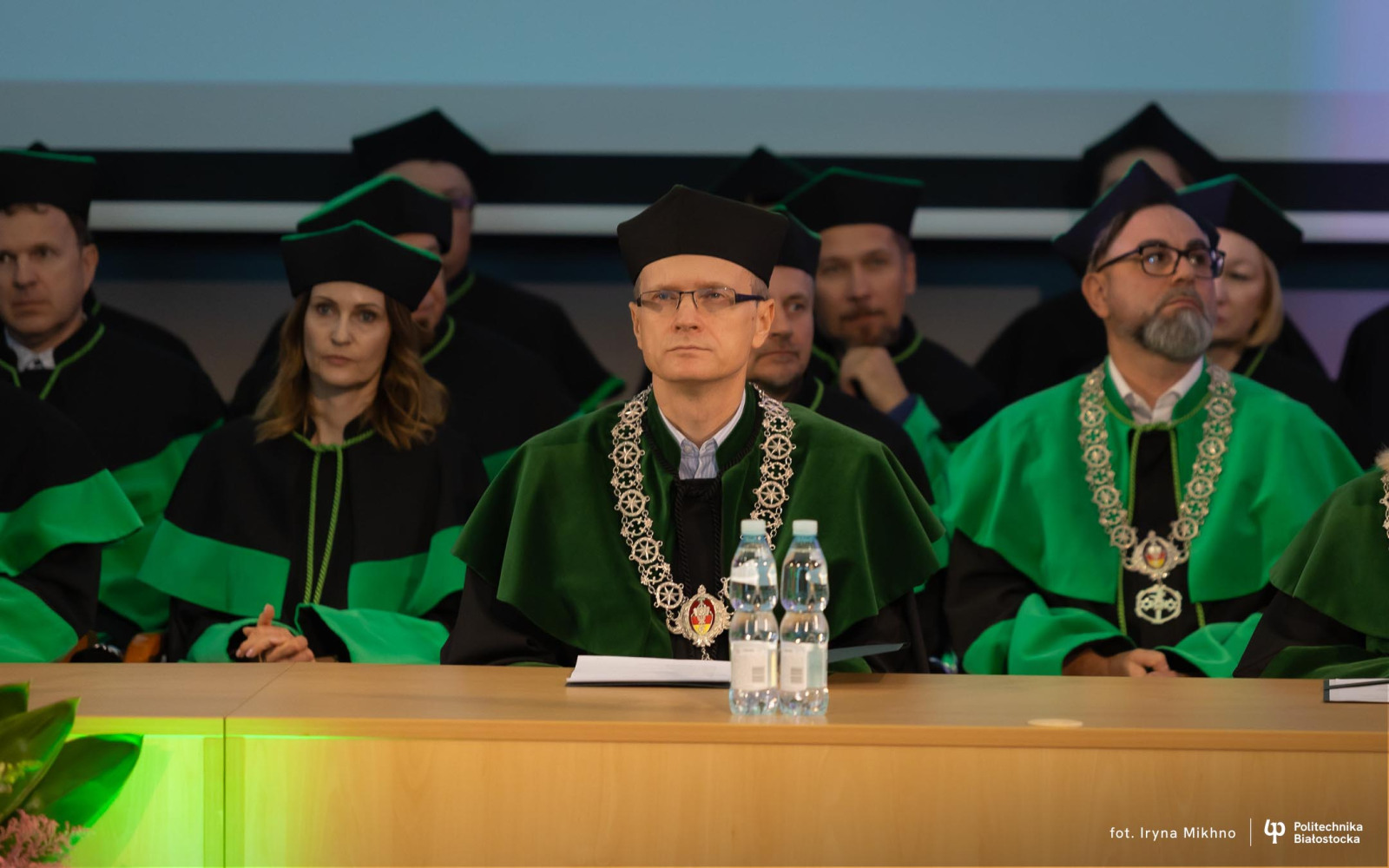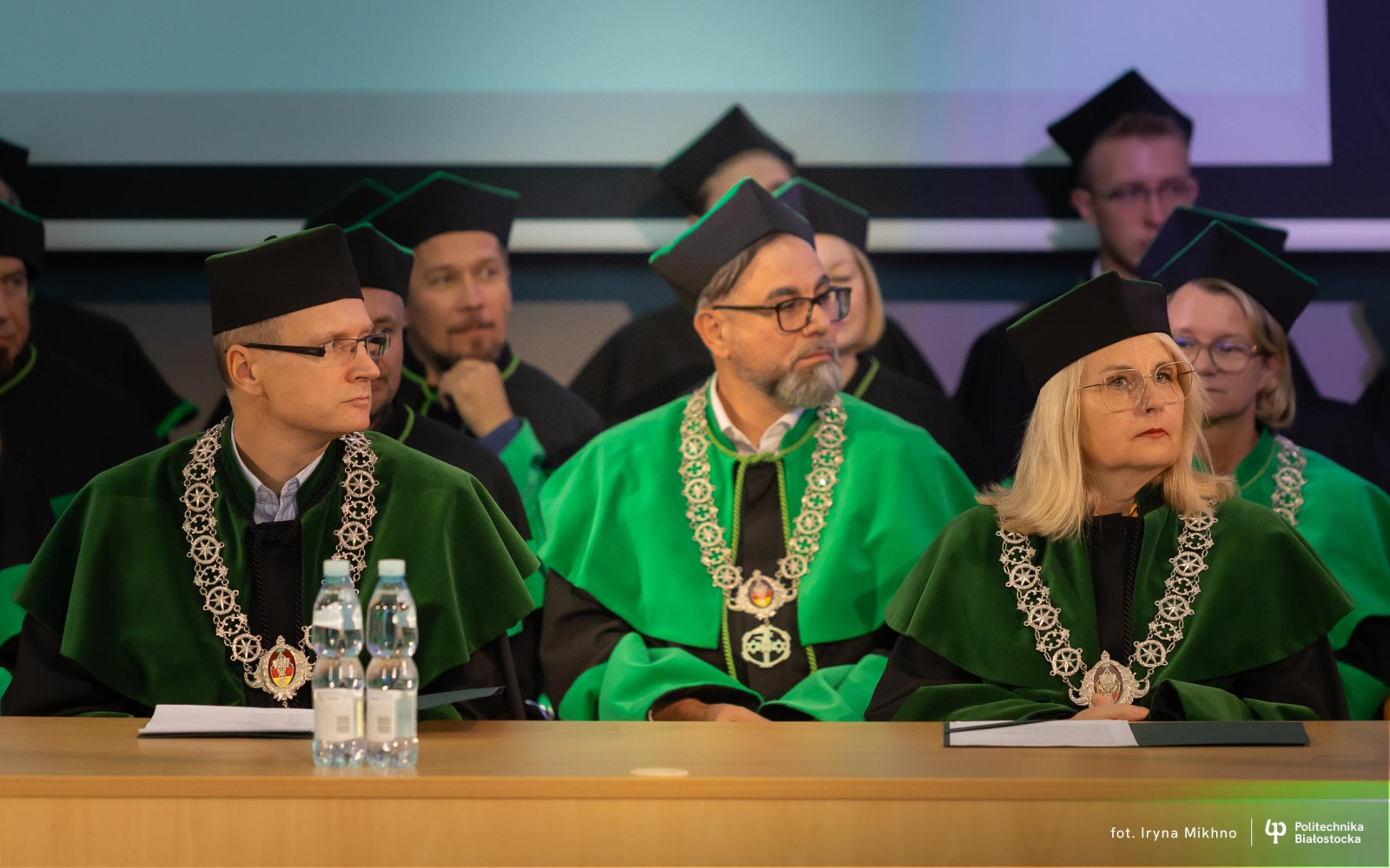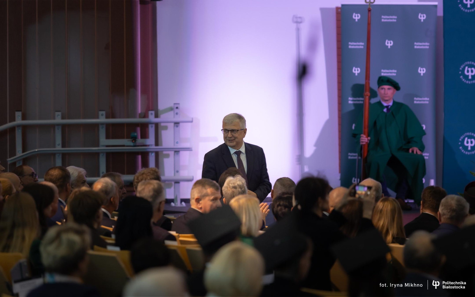 Barbara Okuła przeczytała list Marszałka Sejmu Szymona Hołowni skierowane do społeczności akademickiej Politechniki Białostockiej z okazji inauguracji nowego roku akademickiego. Marszałek podkreśla w nim, że uczelnia jest miejscem, gdzie rodzą się idee zmieniające rzeczywistość i kształtowane są kolejne pokolenia specjalistów oraz liderów, zdolnych odpowiadać na nowe wyzwania społeczne, technologiczne i środowiskowe.