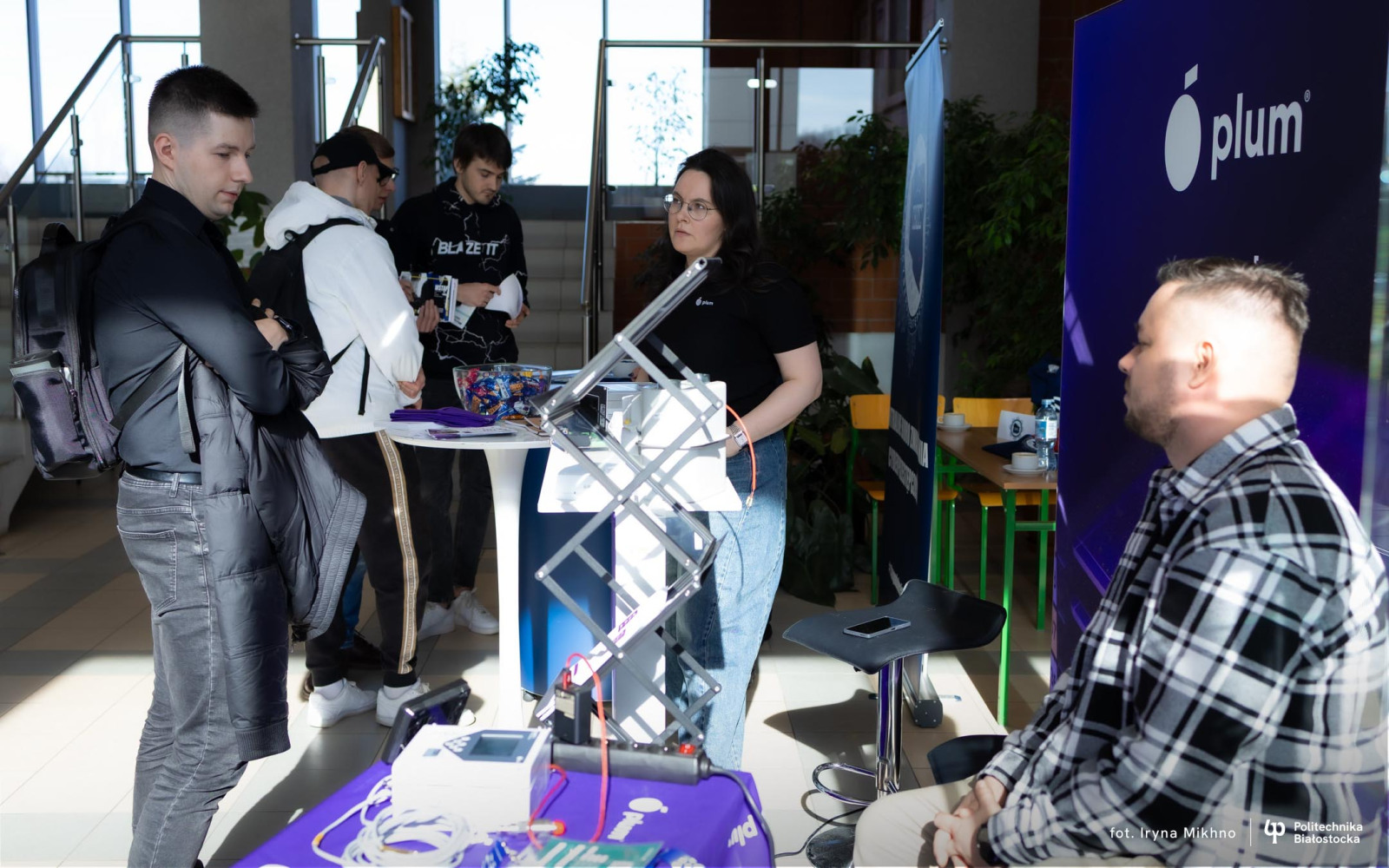 – Na Wydziałowych Dniach Branżowych Politechniki Białostockiej jesteśmy co roku – mówi Paulina Borys, starszy specjalista ds. personalnych w firmie PLUM. – Odwiedzamy wydziały: Mechaniczny, Elektryczny i Informatyki. Szukamy wielu pracowników, m.in. programistów, elektroników, mechaników. Wierzymy, że w Politechnice znajdziemy najlepszych kandydatów. Zapraszamy na praktyki i staże. Jest to dobry moment, żeby zapoznać się z pracodawcą oraz zetknąć się z tym, co będziemy robić w przyszłości i by przełożyć wiedzę zdobytą na studiach na wiedzę zawodową.