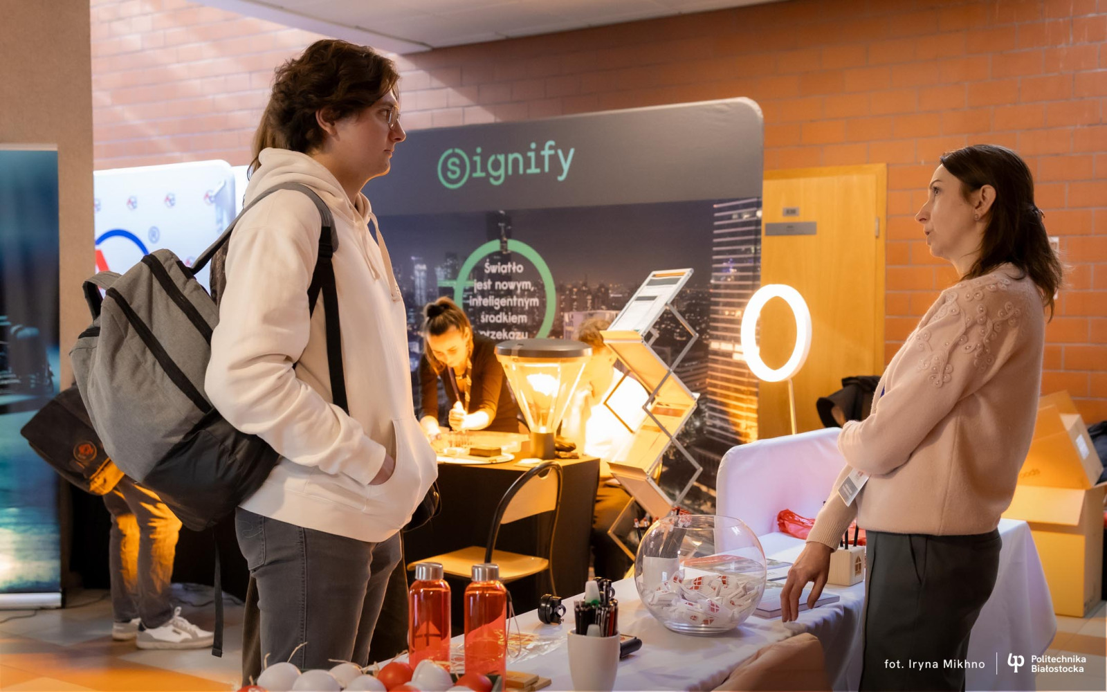 Studenci Politechniki Białostockiej pytali przedstawicieli firm o ścieżki rozwoju, technologie, warunki odbywania praktyk i staży, ale także kulturę organizacyjną i dodatkowe bonusy pracownicze. Wielu z nich podkreślało, że rozmowy przy stoiskach pomogły im lepiej zrozumieć wymagania branży oraz zdecydować o kierunkach dalszego kształtowania swoich kompetencji zawodowych.