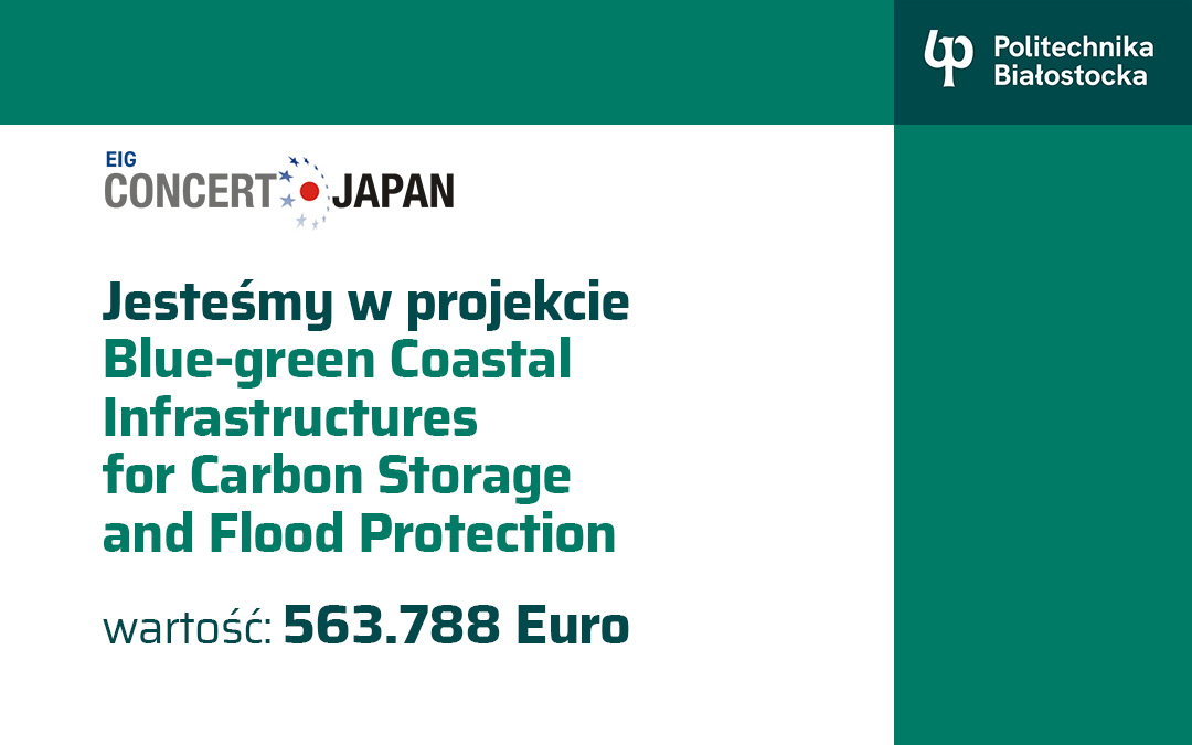 Politechnika Białostocka została kluczowym partnerem w jednym z sześciu projektów wybranych do finansowania w prestiżowym międzynarodowym konkursie EIG CONCERT-Japan – 12th Joint Call:“Oceans: Climate Change Mitigation and Adaptation”.