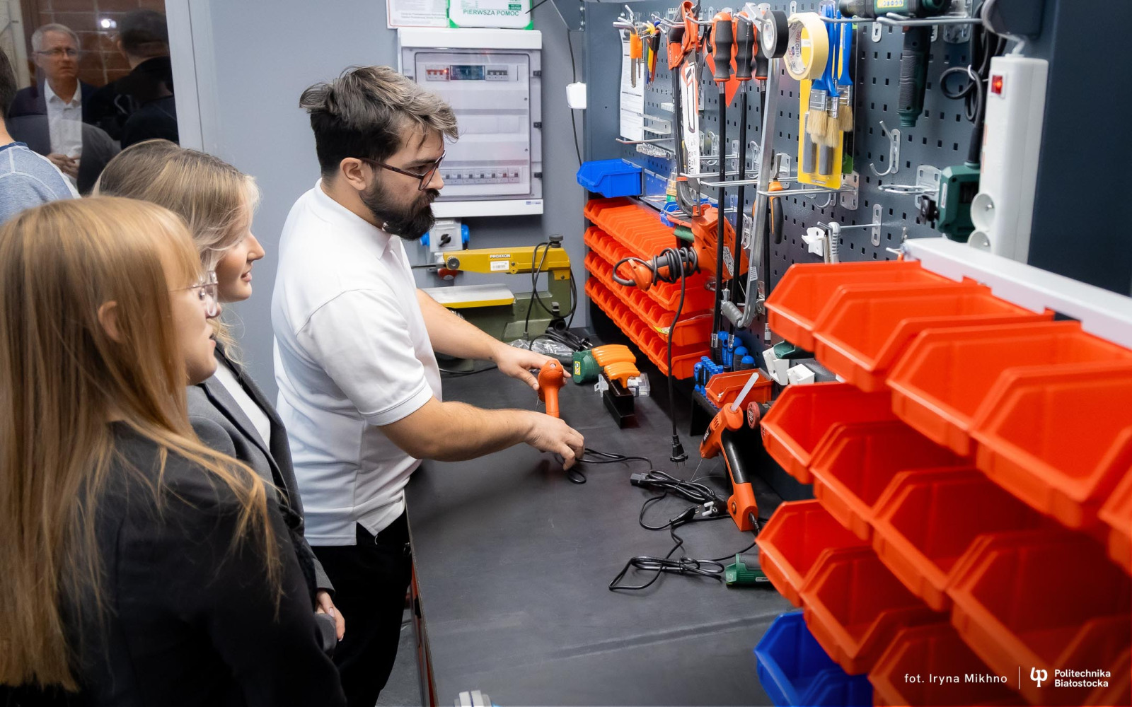 – W każdym z pierwszych sześciu semestrów zaplanowaliśmy inny, zespołowy projekt: od podstawowych konstrukcji i elektroniki po zaawansowane systemy mechatroniczne na koniec studiów I stopnia – wyjaśnia praktyczny wymiar kształcenia prof. dr hab. inż. Michał Kuciej, Dziekan Wydziału Mechanicznego Politechniki Białostockiej. – Z czasem przestrzeń będzie dostępna także dla studentów innych kierunków i kół naukowych.