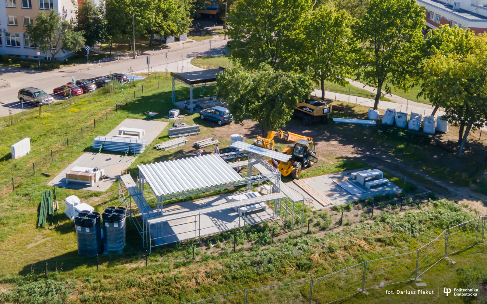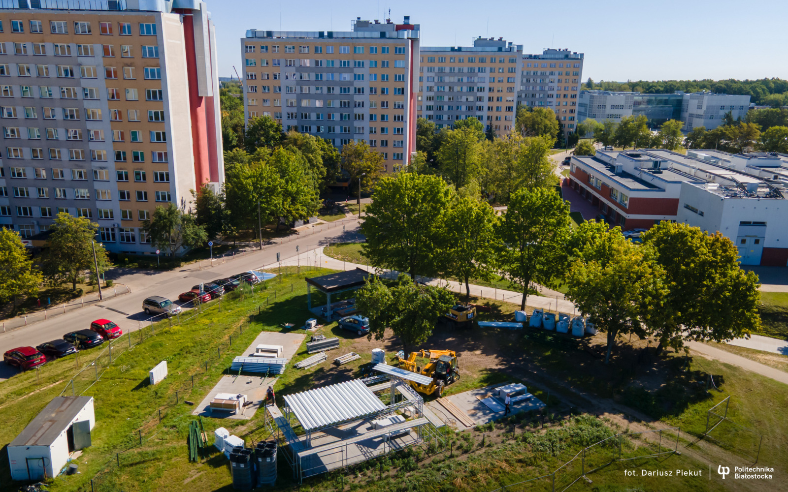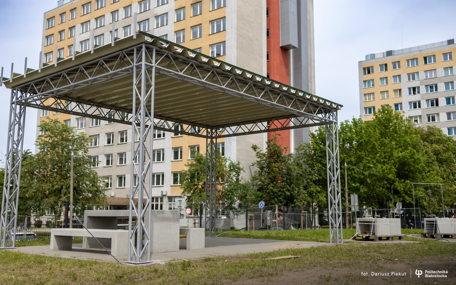 – To było to ścisłe współdziałanie z władzami Uczelni i długie rozmowy o tym, jak nasza strefa powinna wyglądać i jak wpisywać się w strategię Politechniki, w tym w „Moją Zieloną Politechnikę” – mówi inż. Szymon Podziewski, przewodniczący Samorządu Studentów Politechniki Białostockiej. – Braliśmy udział w wyborze koncepcji wiat. W finalnej wersji udało się połączyć najlepsze pomysły studentów.