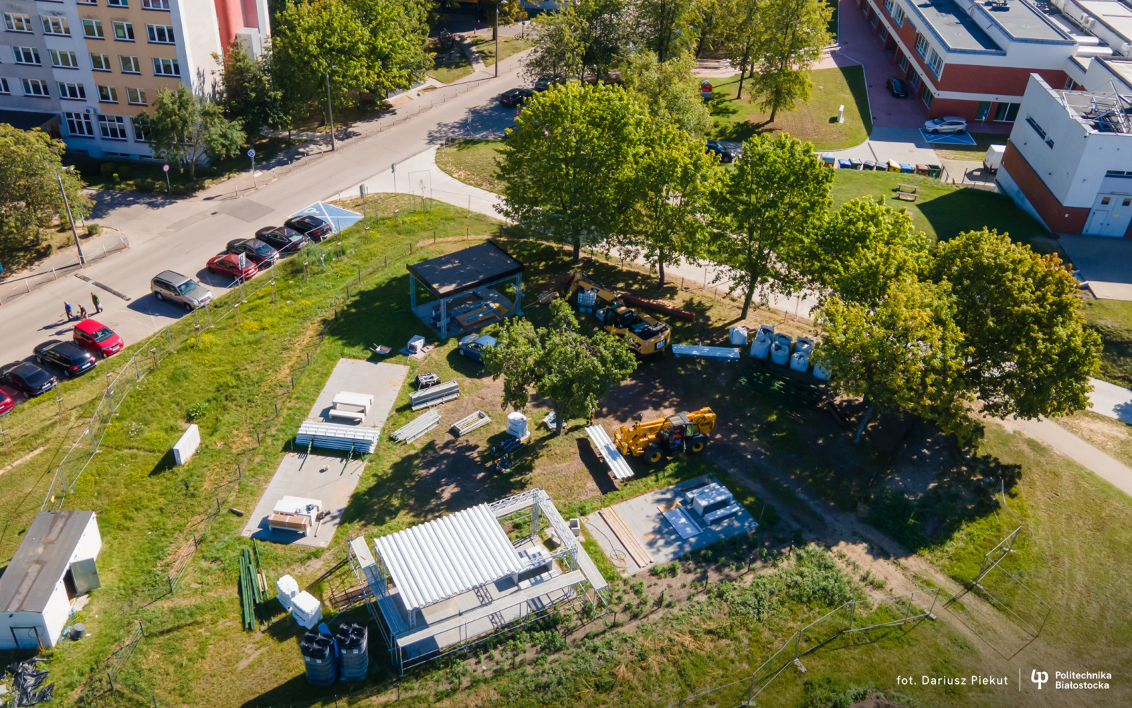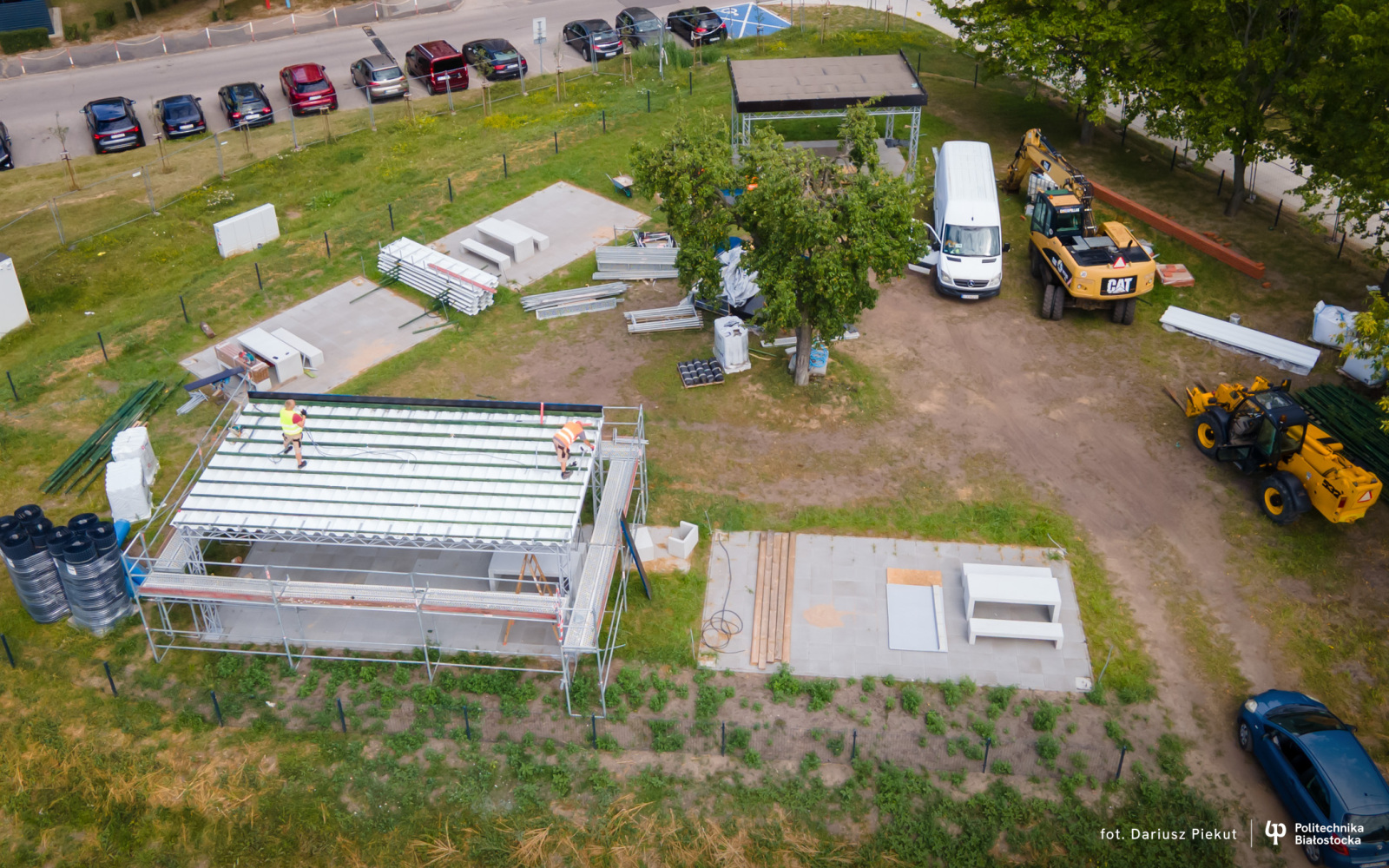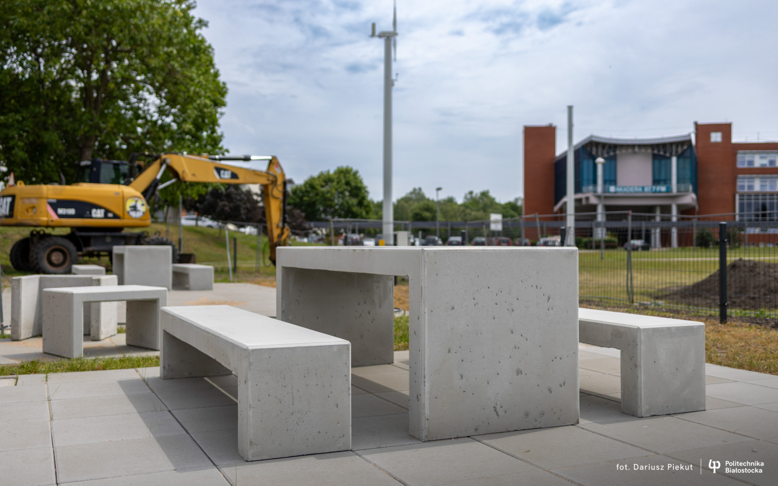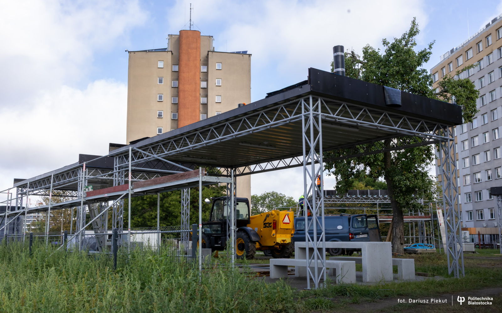 – To było to ścisłe współdziałanie z władzami Uczelni i długie rozmowy o tym, jak nasza strefa powinna wyglądać i jak wpisywać się w strategię Politechniki, w tym w „Moją Zieloną Politechnikę” – mówi inż. Szymon Podziewski, przewodniczący Samorządu Studentów Politechniki Białostockiej. – Braliśmy udział w wyborze koncepcji wiat. W finalnej wersji udało się połączyć najlepsze pomysły studentów.