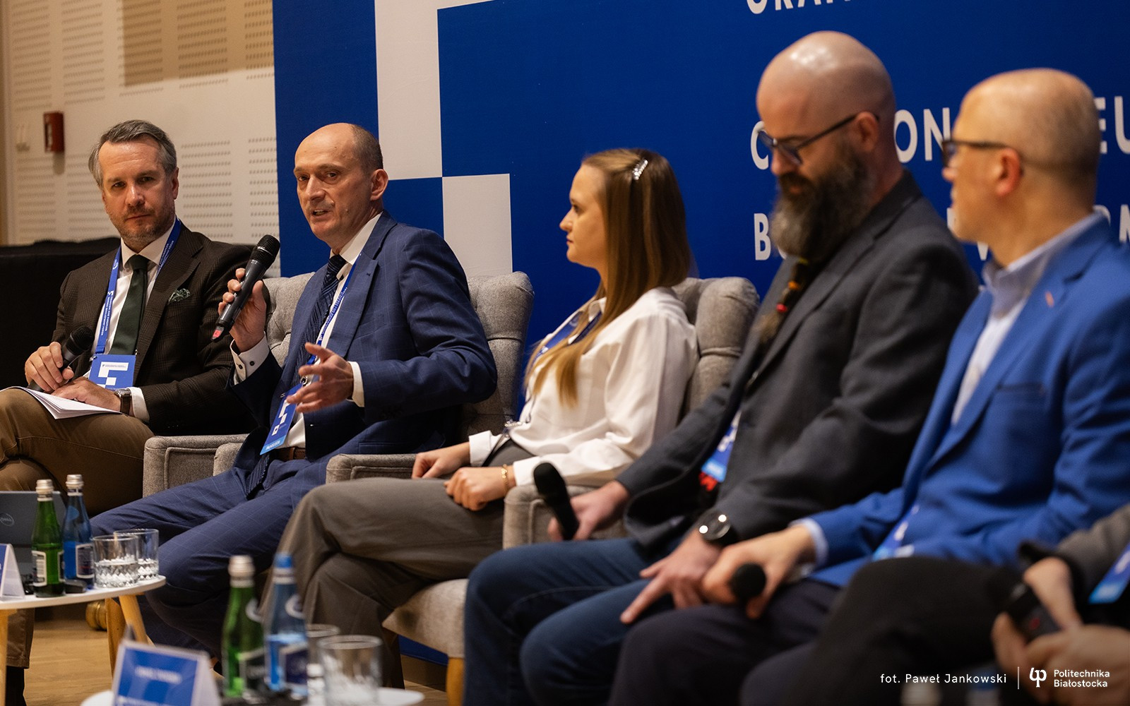 Moderator panelu, Sebastian Rynkiewicz, Prezes Klastra Evoluma, przypomniał, że Polska Komisja Akredytacyjna uznaje Wydział Mechaniczny Politechniki Białostockiej jako jeden z trzech najlepszych wydziałów w Polsce obok Akademii Górniczo-Hutniczej i Politechniki Śląskiej.
