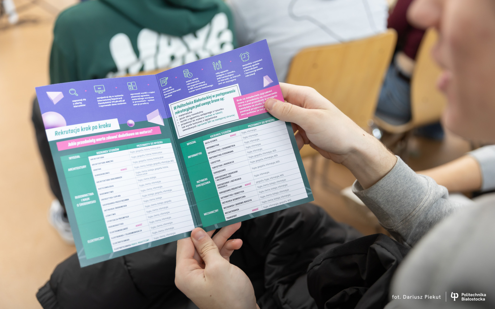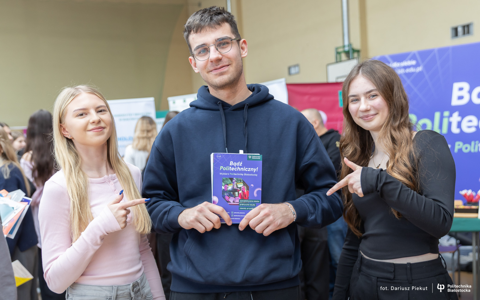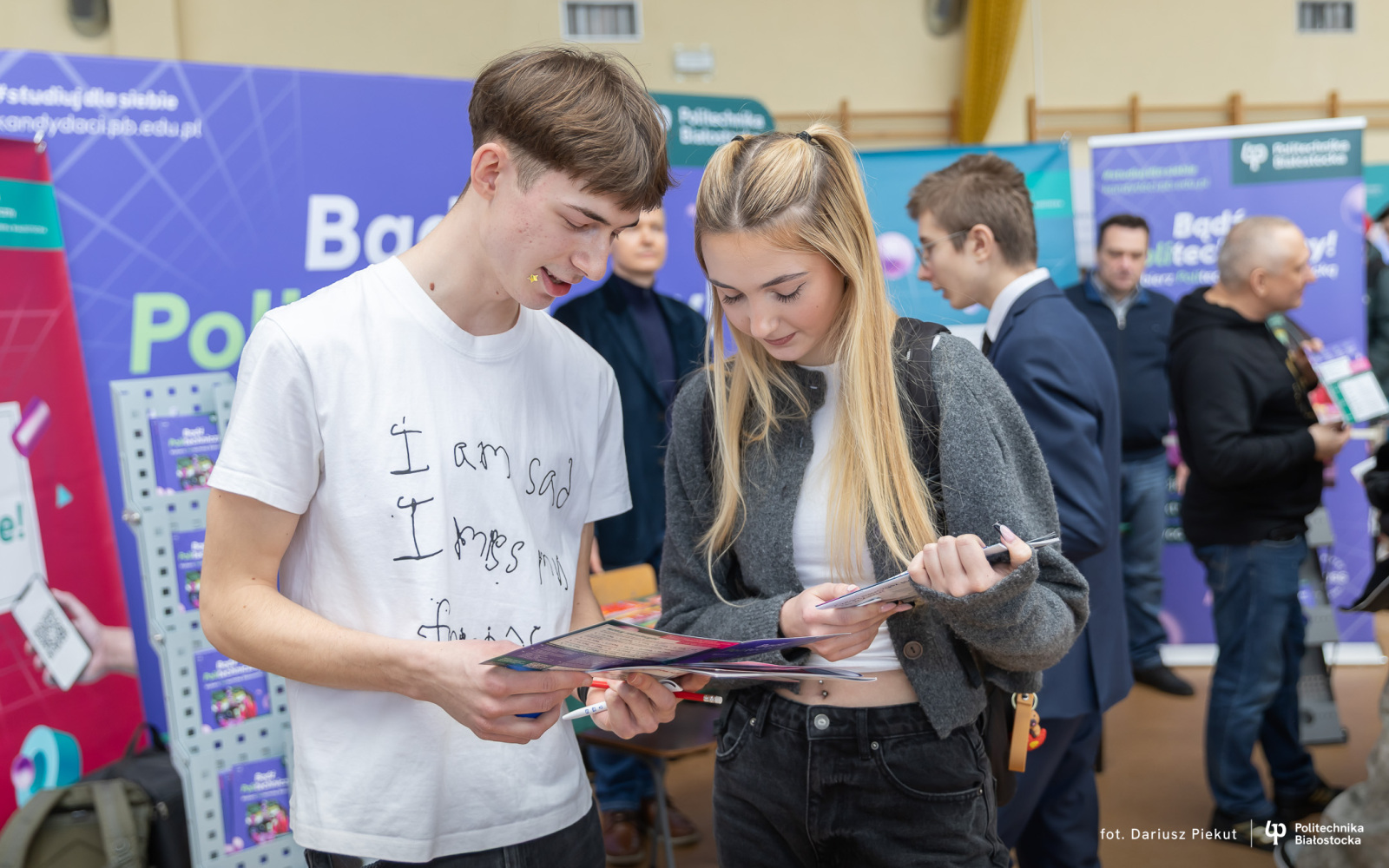 Na stoisku Politechniki Białostockiej maturzyści oraz uczniowie klas młodszych mogli uzyskać informację o 32 kierunkach studiów inżynierskich i licencjackich, zasadach rekrutacji, egzaminach wstępnych z rysunku. To była też okazja, by dowiedzieć się od ekspertów uczelni, jak wcielić w życie swój zawodowy plan, uwzględniając w nim zainteresowania, marzenia o karierze, a także profil kształcenia w szkole średniej.