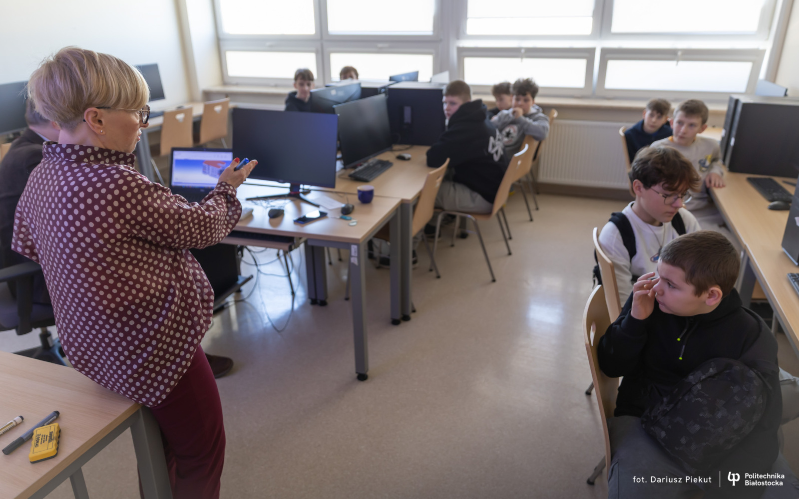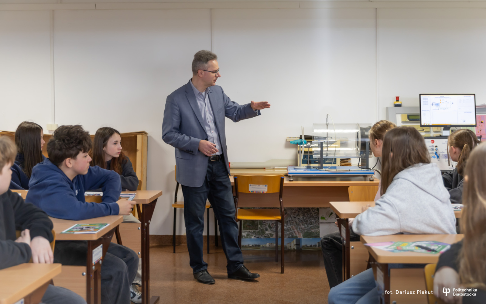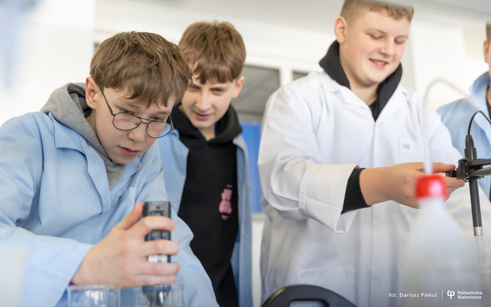 Technologie uzdatniania wody, racjonalne wytwarzanie i użytkowanie energii, ochrona środowiska czy projektowanie wodociągów i kanalizacji. To tematyka specjalistycznych warsztatów, w których biorą udział uczniowie klas VII i VIII ze Szkoły Podstawowej nr 1 i 3 w Siemiatyczach. Do 24 marca 2026 r. będą uczestniczyć w sześciu spotkaniach, które w laboratoriach i pracowniach Uczelni prowadzą nauczyciele akademiccy z Katedry wodociągów, kanalizacji i ciepłownictwa oraz z Katedry technologii w inżynierii środowiska na Wydziale Budownictwa i Nauk o Środowisku Politechniki Białostockiej.