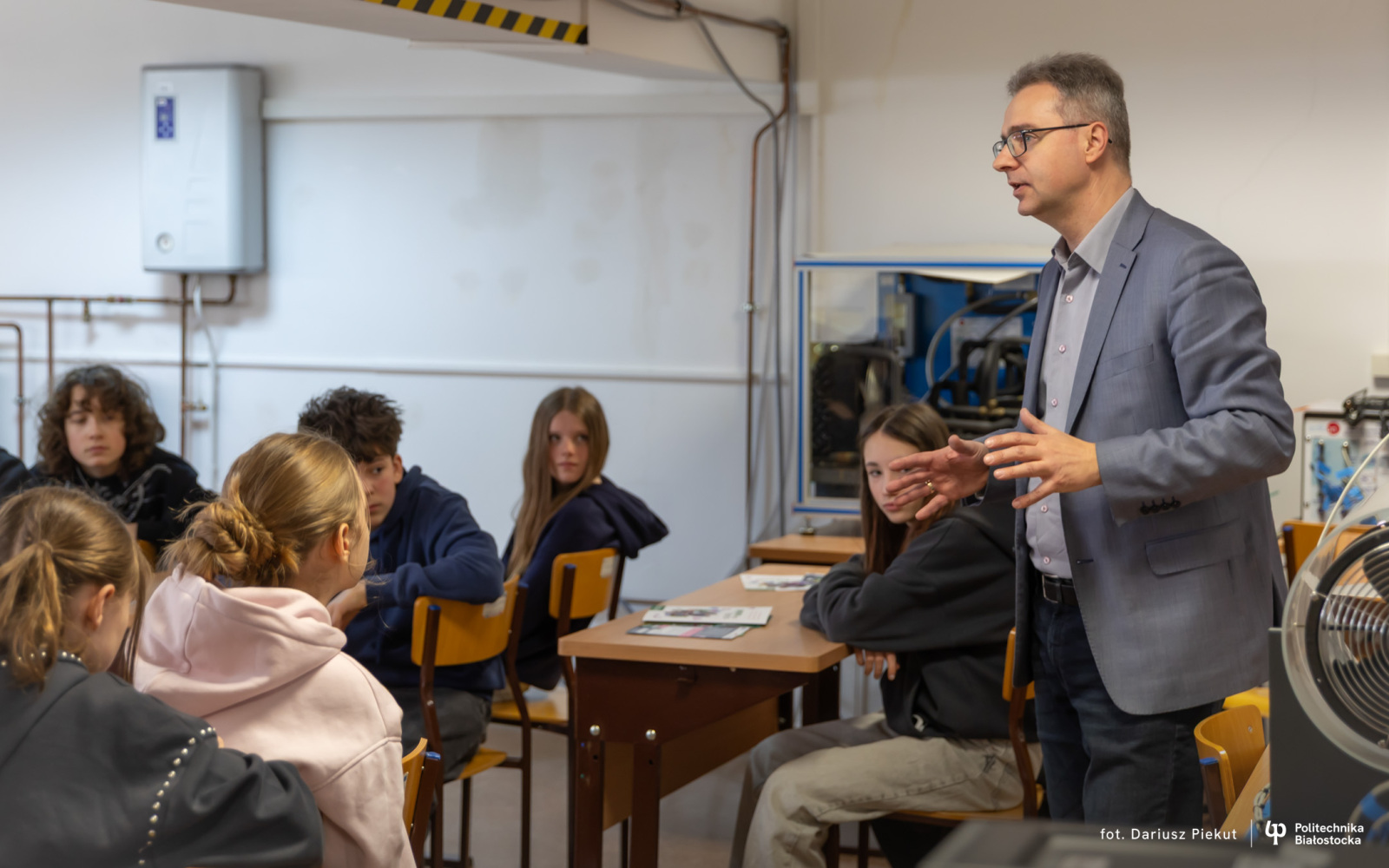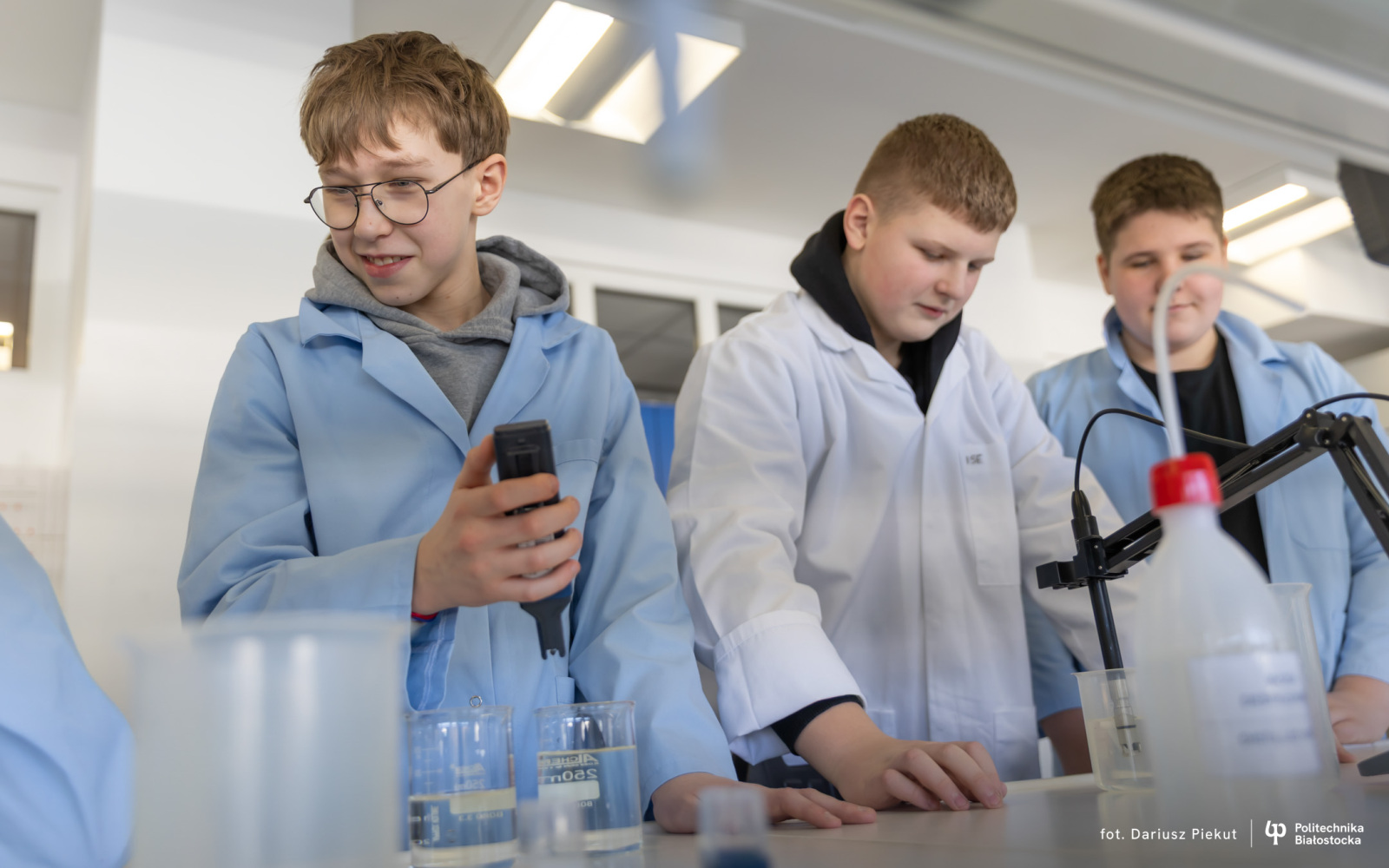 Technologie uzdatniania wody, racjonalne wytwarzanie i użytkowanie energii, ochrona środowiska czy projektowanie wodociągów i kanalizacji. To tematyka specjalistycznych warsztatów, w których biorą udział uczniowie klas VII i VIII ze Szkoły Podstawowej nr 1 i 3 w Siemiatyczach. Do 24 marca 2026 r. będą uczestniczyć w sześciu spotkaniach, które w laboratoriach i pracowniach Uczelni prowadzą nauczyciele akademiccy z Katedry wodociągów, kanalizacji i ciepłownictwa oraz z Katedry technologii w inżynierii środowiska na Wydziale Budownictwa i Nauk o Środowisku Politechniki Białostockiej.
