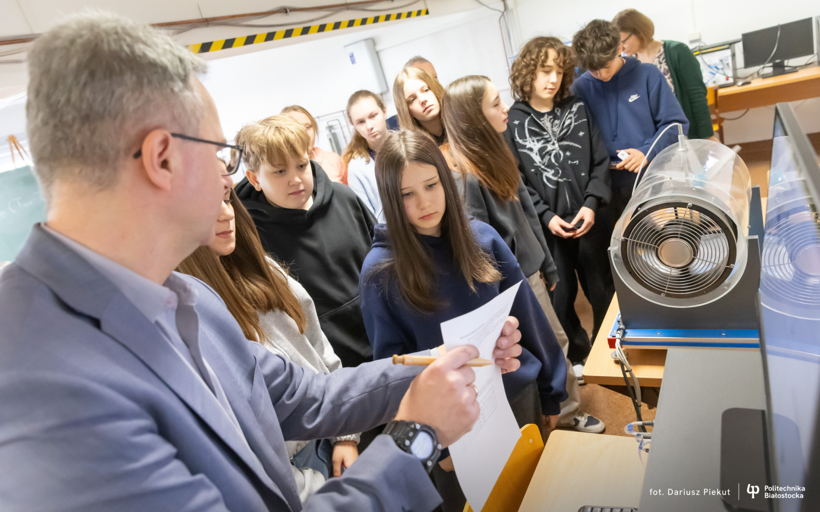 Uczniowie ze szkół podstawowych z Siemiatycz biorą udział w warsztatach, prowadzonych przez naukowców na Wydziale Budownictwa i Nauk o Środowisku Politechniki Białostockiej. Zwiedzają innowacyjne laboratoria i pracownie Uczelni, w których poprzez praktykę poznają korzyści płynące ze studiowania na kierunku inżynieria środowiska.