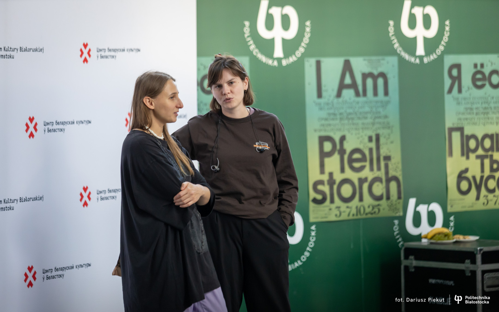 Na wystawie „I Am Pfeilstorch” można było obejrzeć prace artystów i artystek z Białorusi, Polski, Niemiec i Litwy, którzy w formie wideo eksplorują tematy granic: geograficznych, politycznych, emocjonalnych i duchowych. Wśród zaproszonych twórców znaleźli się m.in. Bergamot, Jura Shust, Nadya Sayapina, Yulia Tsvietkova, Roza Busel, Lesia Pcholka, Dasha Sazanovich, Tania Licheuskaya, Tytus Szabelski-Różniak, Ulad Bokhan, Hanna Paniutich i Marija Nemčenko Aržanych.