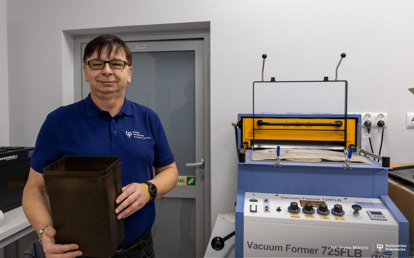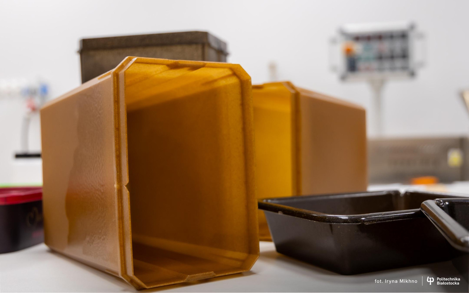 – Poprosiliśmy o wsparcie firmę Pimar-Plastics, która zechciała nam pomóc w próbach przemysłowych – opowiada prof. Jałbrzykowski. – To w firmie, w warunkach przemysłowych można zweryfikować, a zarazem dowieść, że nowy materiał nadaje do metody wtryskiwania, wytłaczania, jak też termoformowania, a wyroby które się uzyskuje tymi technikami w sposób przemysłowy, spełniają wymagania jakościowe.