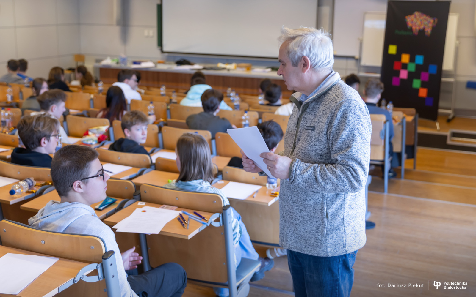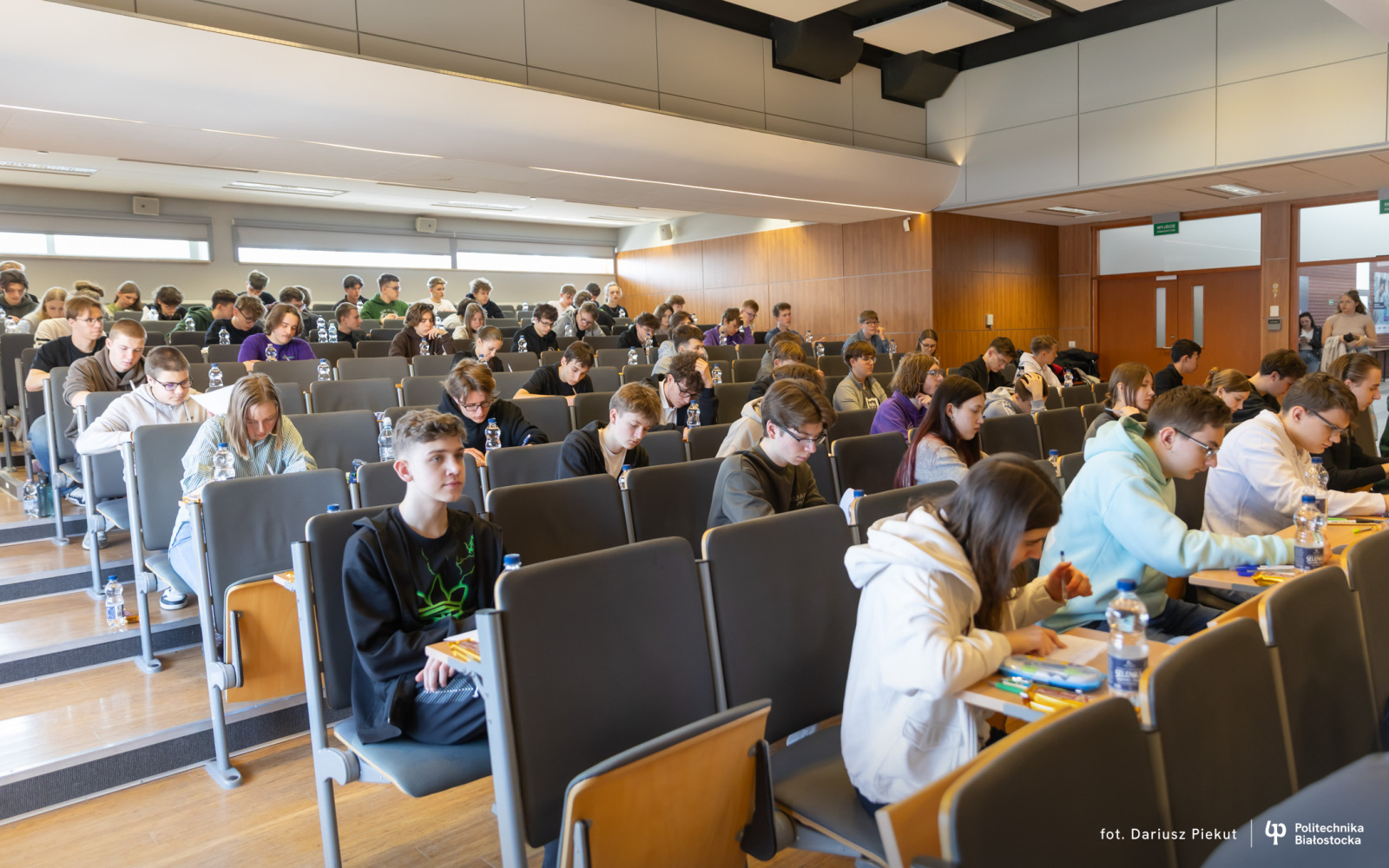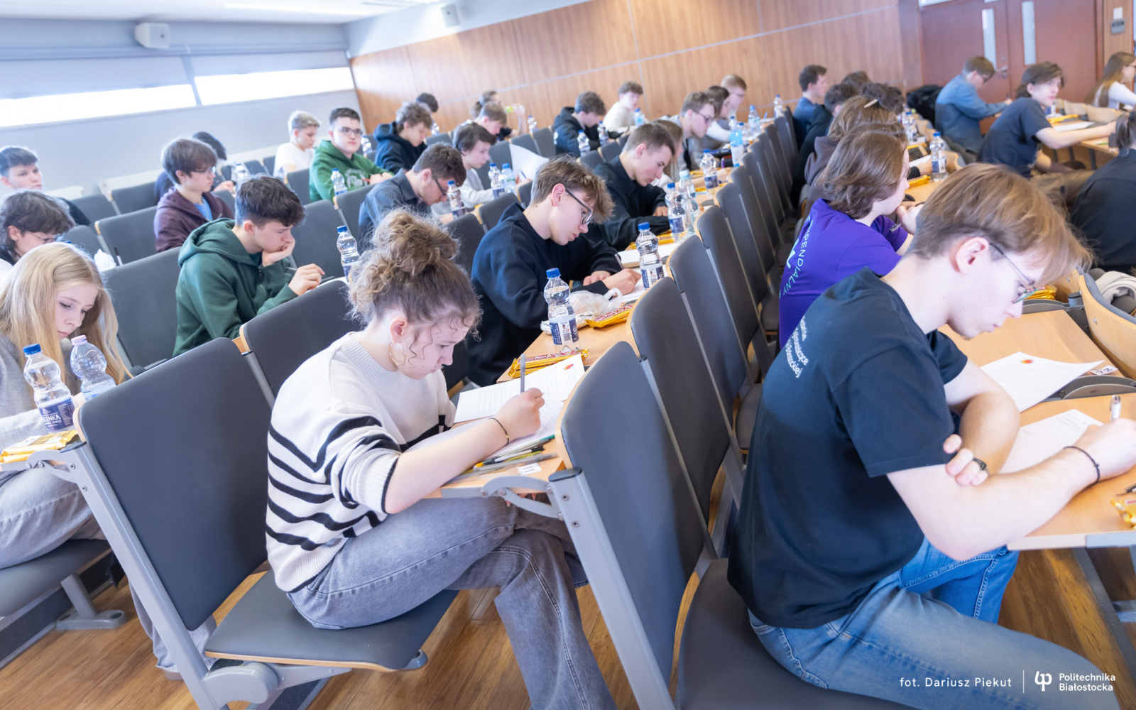 Finał XVIII Konkursu Matematycznego Politechniki Białostockiej zgromadził rekordową liczbę 81 uczestników ( spośród 87 zakwalifikowanych!). Tradycja konkursu, który w przeszłości rozgrywany była pod nazwą Podlaski Konkurs Matematyczny, ewoluowała w stronę wydarzenia o zasięgu ogólnopolskim. I choć trzon uczestników wciąż stanowią uczniowie białostockich liceów (I LO, II LO, VIII LO oraz Akademickiego Liceum Ogólnokształcącego Politechniki Białostockiej), tegoroczny finał udowodnił, że marka konkursu przyciąga talenty z najodleglejszych zakątków kraju. W auli Wydziału Informatyki zasiedli reprezentanci szkół m.in. z Gdyni, Lubartowa, Bielska Podlaskiego i Łomży.