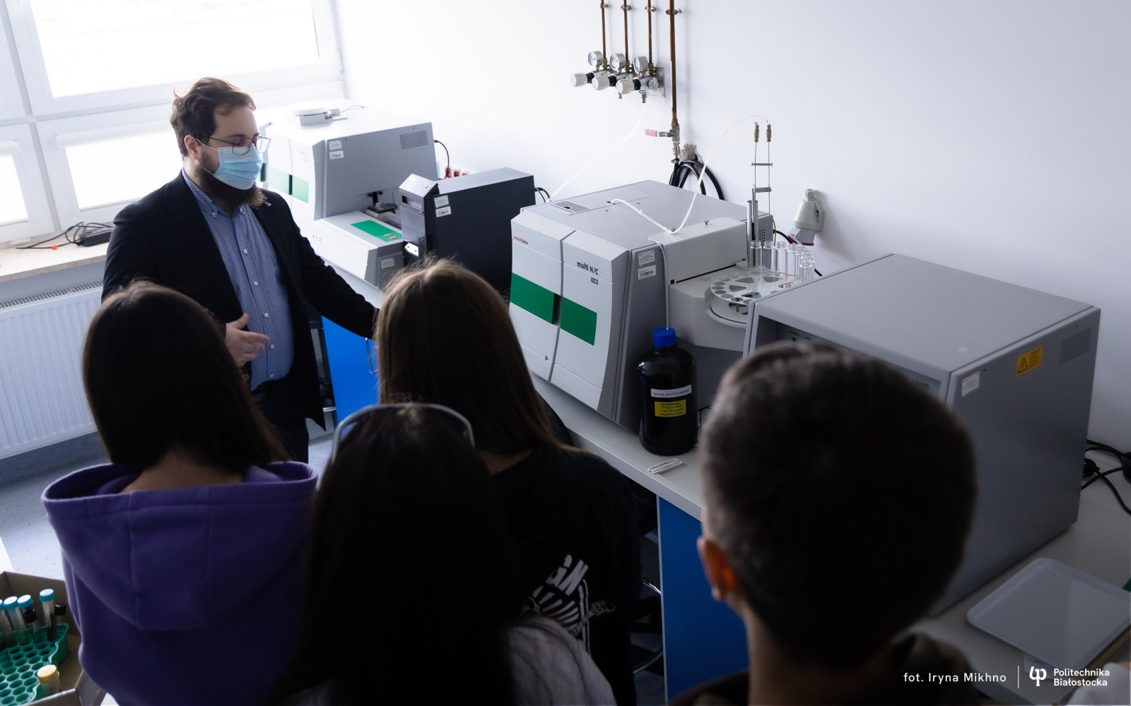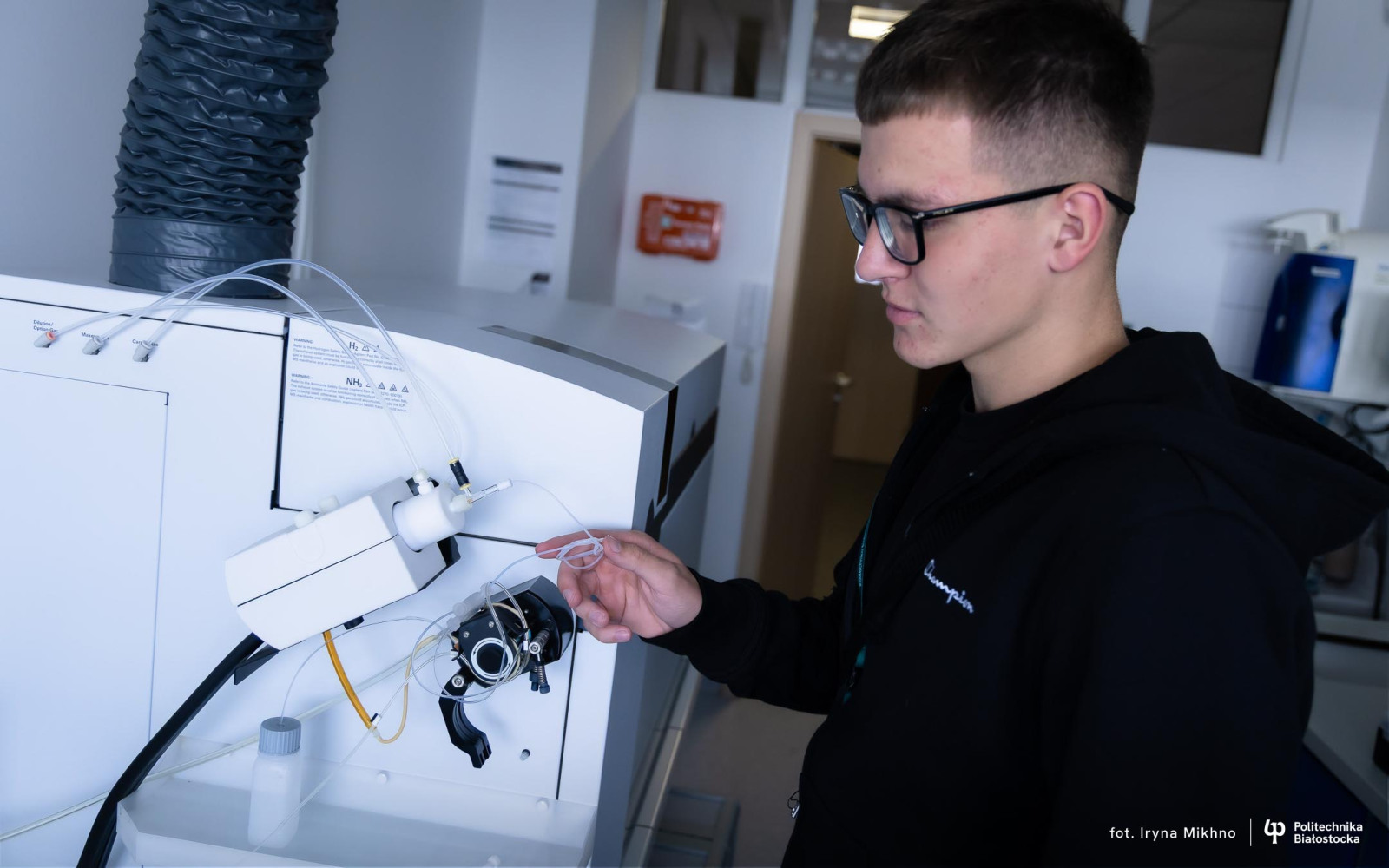 Dmytro Veiko z Gródka z zaciekawieniem oglądał laboratoria biotechnologiczne i bez problemu porozumiewał się ze studentami.